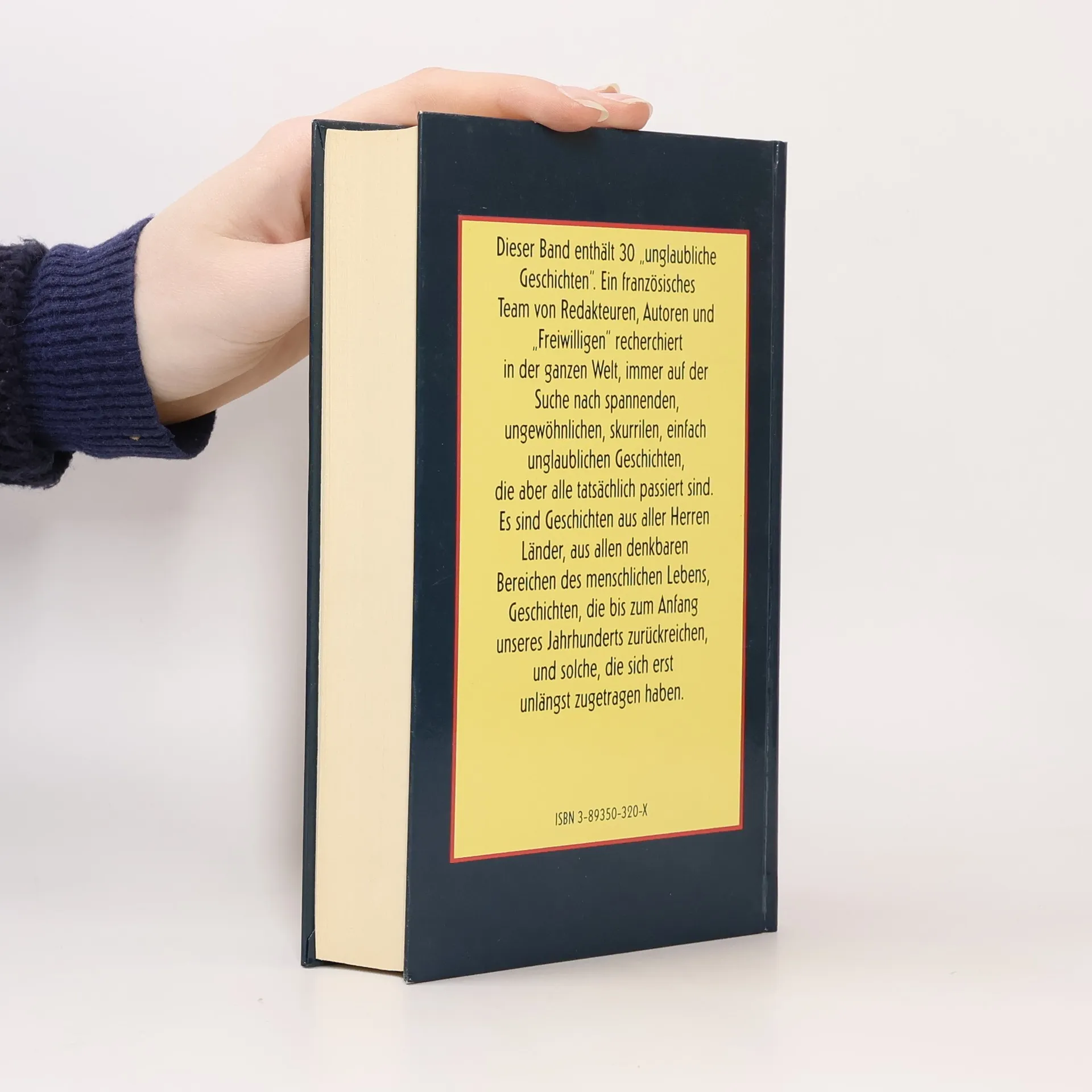 "Deiser Band enthält 30 'unglaubliche Geschichten.' Ein französisches Team von Redakteuren, Autoren und 'Freiwilligen' recherchiert in der ganzen Welt, immer auf der Suche nach spannenden, ungewöhnlichen, skurrilen, einfach unglaublichen Geschichten, die aber alle tatsächlich passiert sind. Es sind Geschichten aus aller Herren Länder, aus allen denkbaren Bereichen des menschlichen Lebens, Geschichten, die bis zum Anfang unseres Jahrhunderts zurüchreichen, und solche, die sich erst unlängst zugetragen haben"--P. 4. of cover.