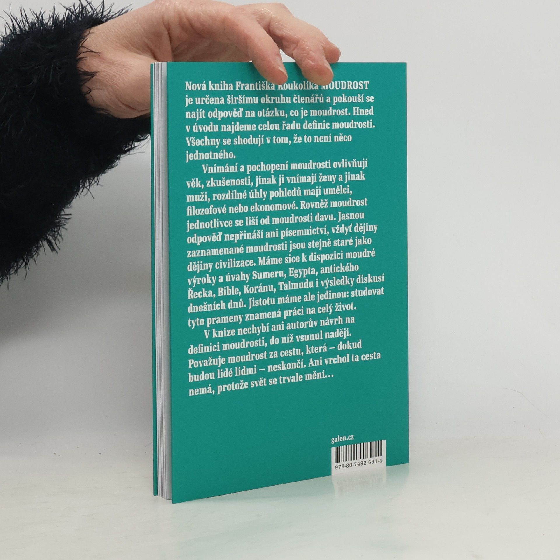Nová kniha Františka Koukolíka MOUDROST je určena širšímu okruhu čtenářů a pokouší se najít odpověď na otázku, co je moudrost. Hned v úvodu najdeme celou řadu definic moudrosti. Všechny se shodují v tom, že to není něco jednotného. Vnímání a pochopení moudrosti ovlivňují věk, zkušenosti, jinak ji vnímají ženy a jinak muži, rozdílné úhly pohledů mají umělci, filozofové nebo ekonomové. Rovněž moudrost jednotlivce se liší od moudrosti davu. Jasnou odpověď nepřináší ani písemnictví, vždyť dějiny zaznamenané moudrosti jsou stejně staré jako dějiny civilizace. Máme sice k dispozici moudré výroky a úvahy Sumeru, Egypta, antického Řecka, Bible, Koránu, Talmudu i výsledky diskusí dnešních dnů. Jistotu máme ale jedinou: studovat tyto prameny znamená práci na celý život. V knize nechybí ani autorův návrh na definici moudrosti, do níž vsunul naději. Považuje moudrost za cestu, která - dokud budou lidé lidmi - neskončí. Ani vrchol ta cesta nemá, protože svět se trvale mění