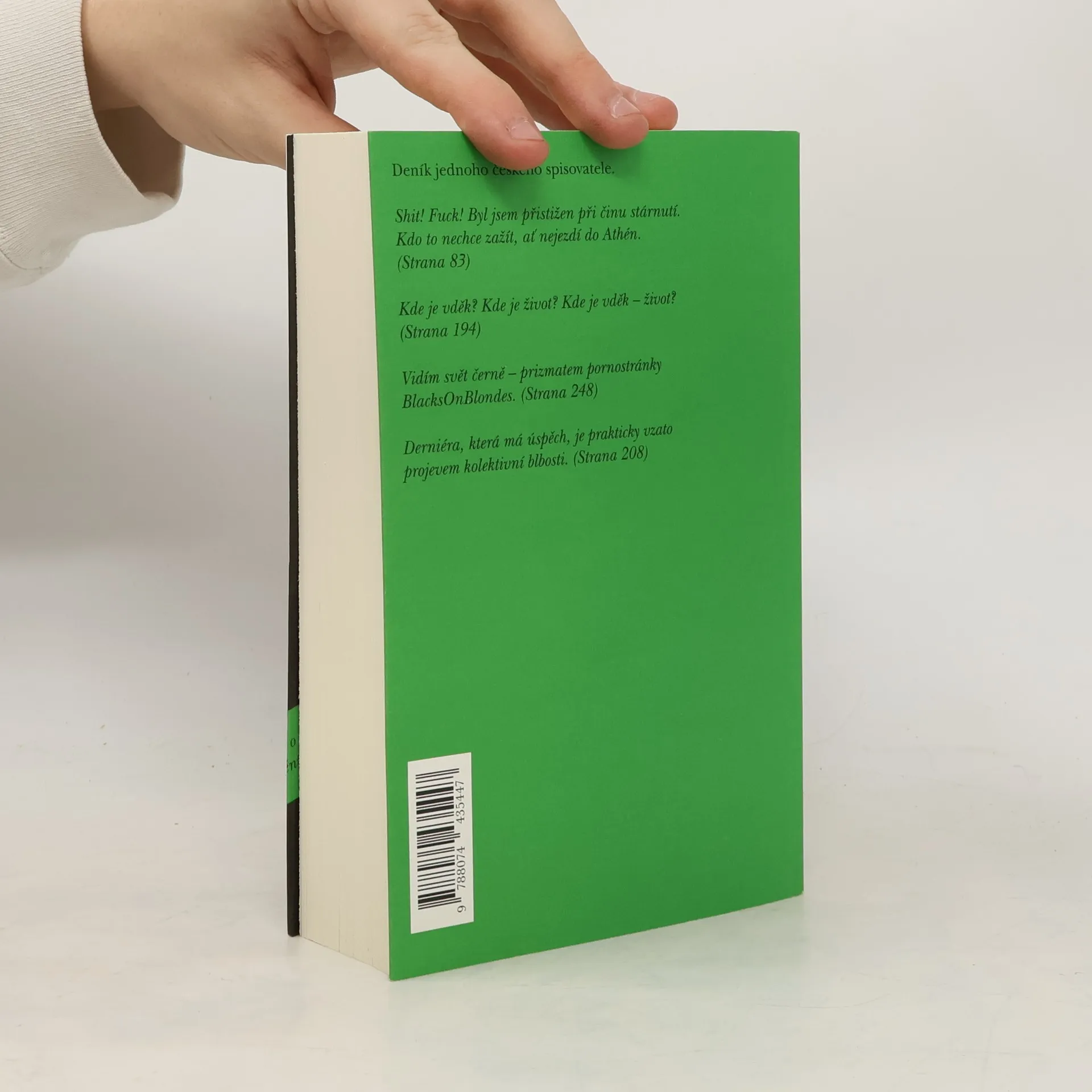 Toto je deník dobře zavedeného spisovatele. Je mu pětačtyřicet, má ženu, dvě děti a bydlí v Athénách. Všechny své trumfy už rozdal, jeho ješitnost je zhrzená, stárne. Kdo je David Zábranský a má to nejlepší už za sebou? Nevíme. Ale čas dospět, přestat si lhát do kapsy a odhodit servítky právě nastal. Toto je román o krizi středního věku i nevyžádaná příručka pro český literární provoz.