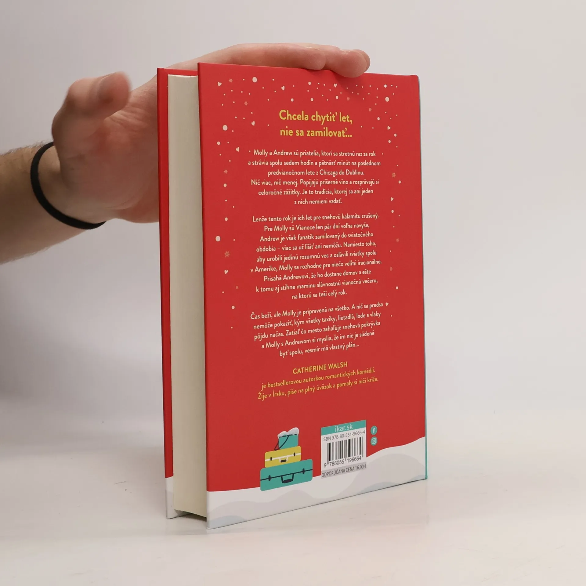 Chcela chytiť let, nie sa zamilovať... Molly a Andrew sú priatelia, ktorí sa stretnú raz za rok a strávia spolu sedem hodín a pätnásť minút na poslednom predvianočnom lete z Chicaga do Dublinu. Nič viac, nič menej. Popíjajú príšerné víno a vymieňajú si celoročné zážitky. Je to tradícia, ktorej sa ani jeden z nich nemieni vzdať. Lenže tento rok je ich let pre snehovú kalamitu zrušený. Pre Molly sú Vianoce len pár dní voľna navyše, Andrew je však hotový fanatik zamilovaný do sviatočného obdobia – viac sa už líšiť ani nemôžu. Namiesto toho, aby urobili jedinú rozumnú vec a oslávili sviatky spolu v Amerike, Molly sa rozhodne pre niečo veľmi hlúpe. Priam iracionálne. Prisahá Andrewovi, že ho dostane domov a ešte k tomu aj stihne mamkinu slávnostnú vianočnú večeru, na ktorú sa teší celý rok. Čas beží, ale Molly má v zálohe vždy nový plán. A nič sa predsa nemôže pokaziť, kým všetky taxíky, lietadlá, lode a vlaky pôjdu načas. Zatiaľ čo na mesto padá snehová pokrývka a Molly s Andrewom si myslia, že im nie je súdené byť spolu, vesmír má vlastný plán...