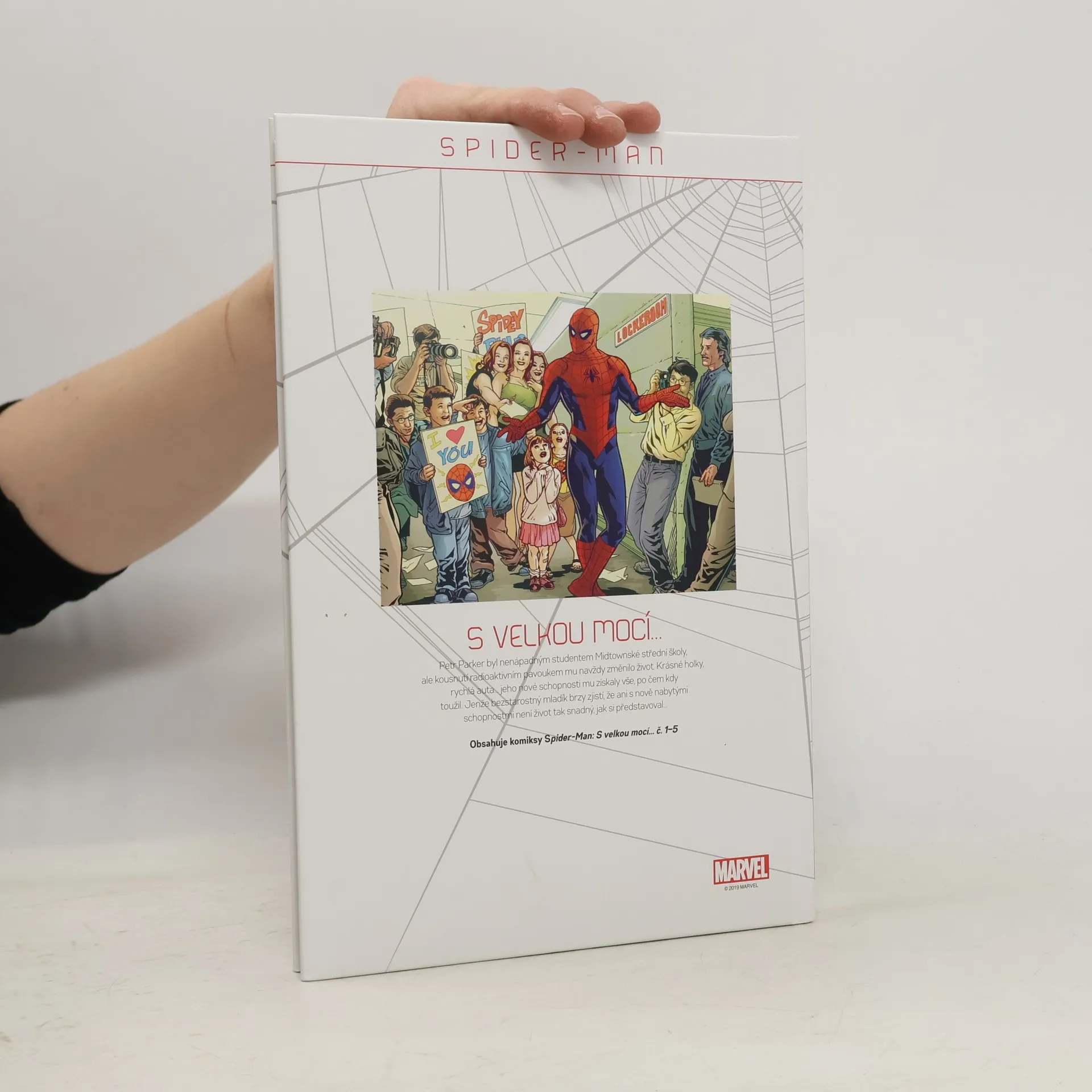 Petr Parker byl nenápadným studentem Midtownské střední školy, ale kousnutí radioaktivním pavoukem mu navždy změnilo život. Krásné holky, rychlá auta... jeho nové schopnosti mu získaly vše, po čem kdy toužil. Jenže bezstarostný mladík brzy zjistí, že ani s nově nabytými schopnostmi neníživot tak snadný, jak si představoval... Obsahuje komiksy Spider-Man: S velkou mocí... č. 1-5