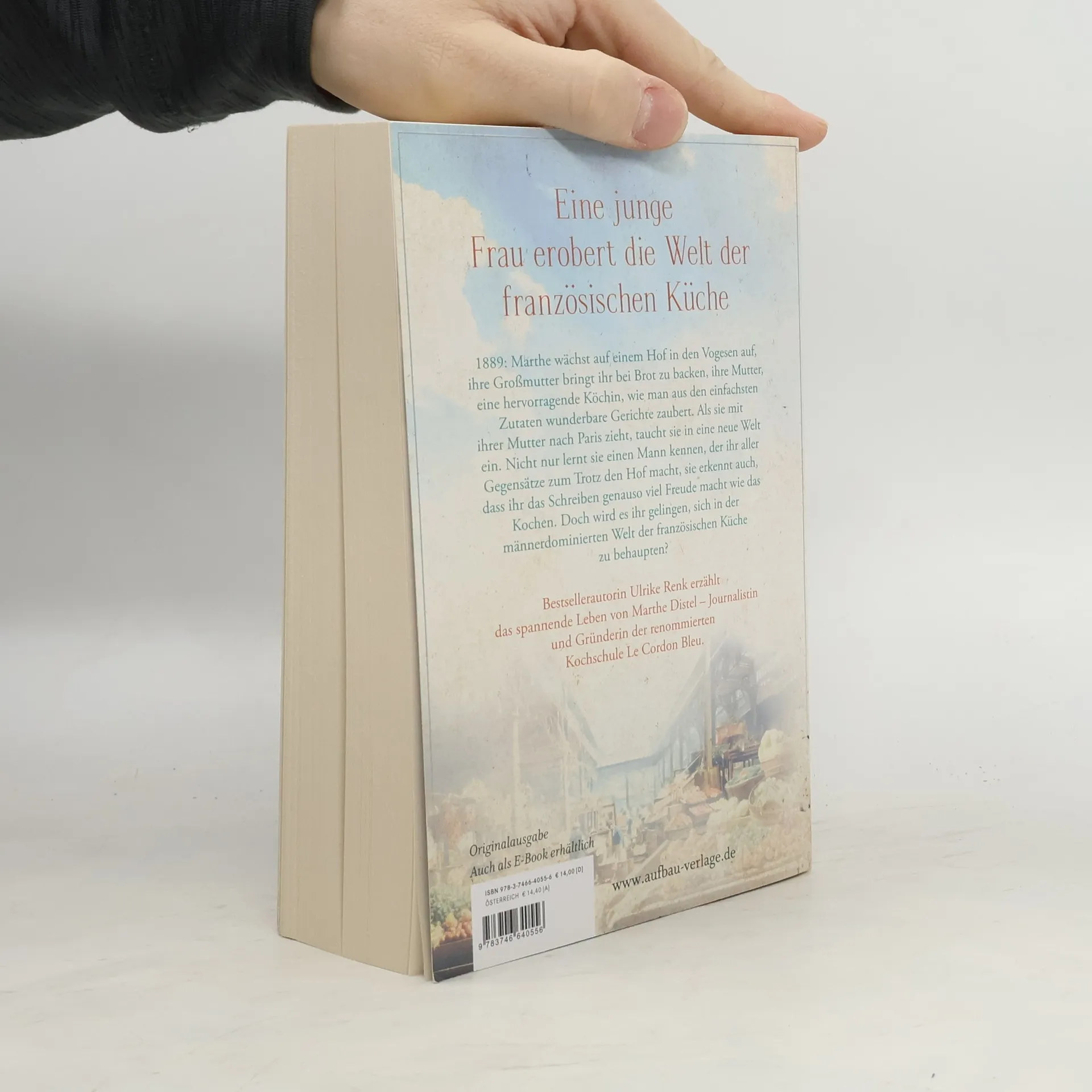 Eine junge Frau erobert die Welt der französischen Küche 1889: Marthe wächst auf einem Hof in den Vogesen auf, ihre Großmutter bringt ihr bei Brot zu backen, ihre Mutter, eine hervorragende Köchin, wie man aus den einfachsten Zutaten wunderbare Gerichte zaubert. Als sie mit ihrer Mutter nach Paris zieht, taucht sie in eine neue Welt ein. Nicht nur lernt sie einen Mann kennen, der ihr aller Gegensätze zum Trotz den Hof macht, sie erkennt auch, dass ihr das Schreiben genauso viel Freude macht wie das Kochen. Doch wird es ihr gelingen, sich in der männerdominierten Welt der französischen Küche zu behaupten? Bestsellerautorin Ulrike Renk erzählt das spannende Leben von Marthe Distel –Journalistin und Gründerin der renommiertesten Kochschule Le Cordon Bleu.