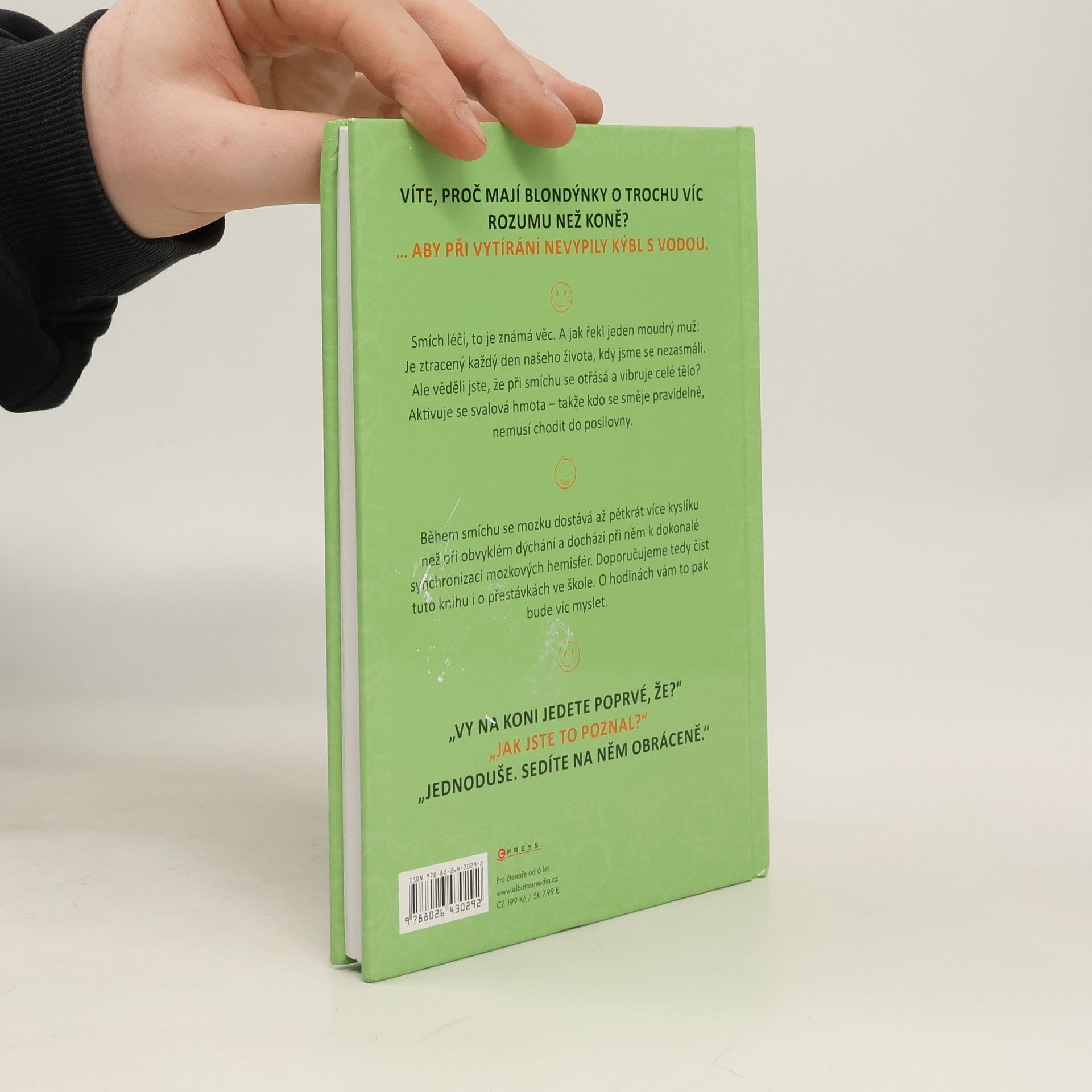 Tato kniha plná vtipů udělá radost všem. Ať už se začtete do vtipů o Pepíčkovi, ze školy, o prarodičích, z pohádek nebo dalších, pořádně se zasmějete a budete mít dobrou náladu. Věděli jste, že během smíchu se mozku dostává až 5 x více kyslíku než při obvyklém dýchání a dochází při něm k dokonalé synchronizaci mozkových hemisfér? Doporučujeme tedy číst tuto knihu i o přestávkách ve škole. O hodinách vám to pak bude víc myslet.