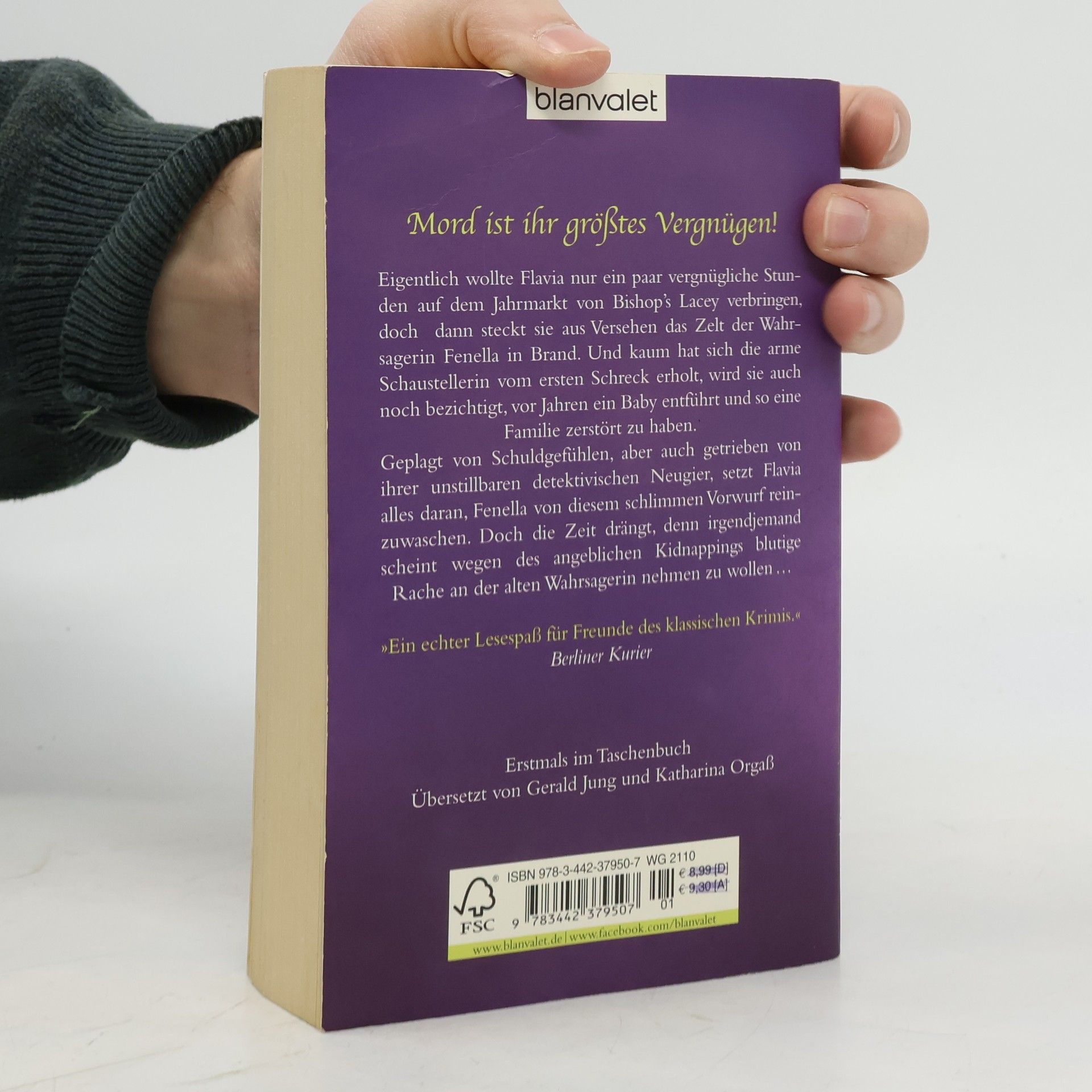Eigentlich wollte Flavia nur ein paar vergnügliche Stunden auf dem Jahrmarkt von Bishop’s Lacey verbringen, doch dann steckt sie aus Versehen das Zelt der Wahrsagerin Fenella in Brand. Und wenig später wird die arme Schaustellerin auch noch bezichtigt, vor Jahren ein Baby entführt zu haben. Getrieben von ihrer unstillbaren detektivischen Neugier, setzt Flavia alles daran, Fenella von diesem Vorwurf reinzuwaschen. Doch die Zeit drängt, denn irgendjemand scheint wegen des Kidnappings blutige Rache an der alten Wahrsagerin nehmen zu wollen …Bradley/e393989.rhd\">http://www.randomhouse.de/Taschenbuch... --