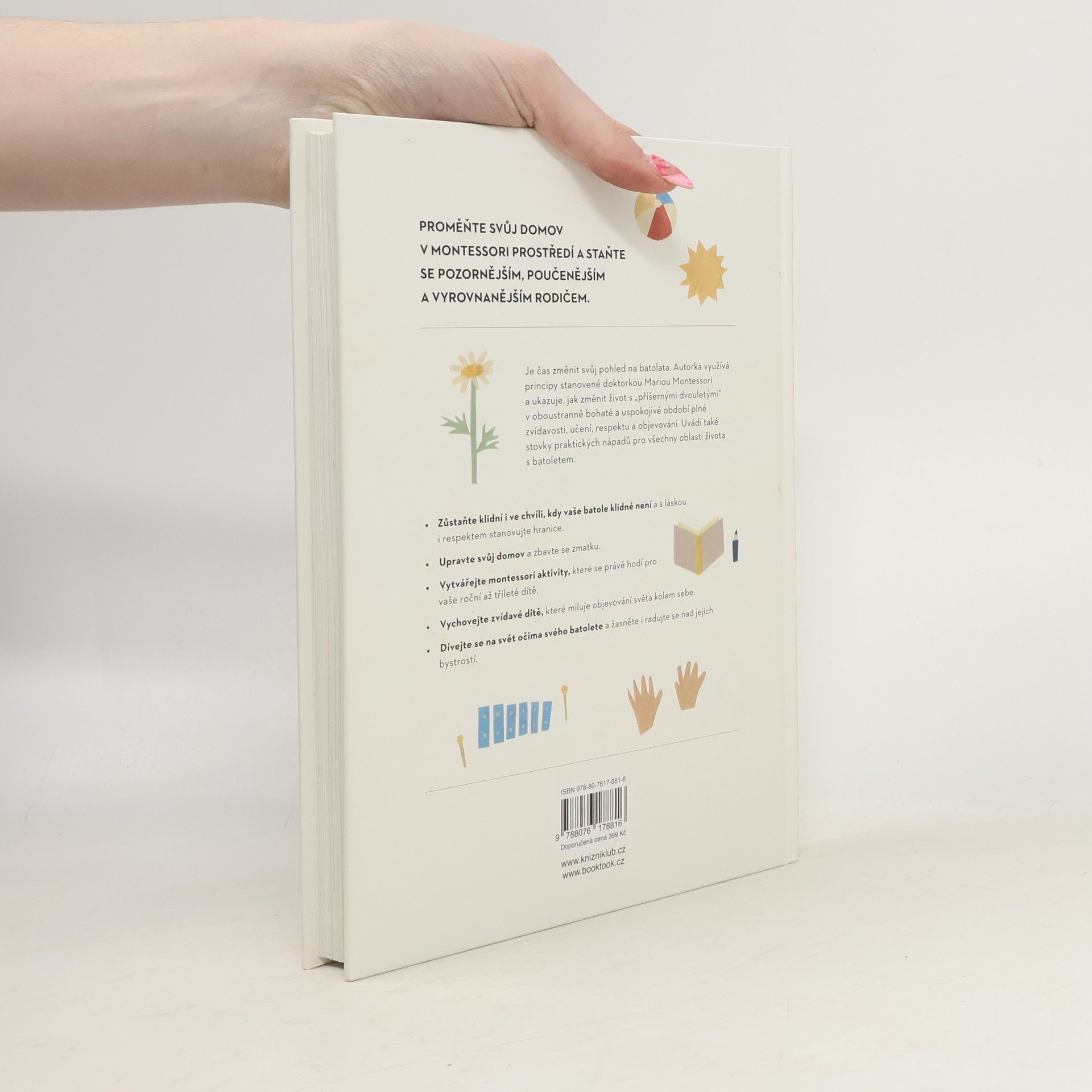 Srozumitelná a komplexní příručka k výchově batolat podle Montessori. Chcete najít způsob, jak si výchovu batolete víc užívat? Povzbuzovat svoje dítě k tomu, aby se rádo učilo? Dosáhnout toho, že dítě spolupracuje, aniž byste na něj křičeli, nebo se opakovali? Pak je tahle kniha pro vás to pravé. Montessori přístup vede děti k tomu, aby samy objevovaly svět vlastníma rukama a přebíraly odpovědnost, když je potřeba, zatímco dospělí fungují jako vedení. Tato kniha nabízí jednoduché, praktické rady, jak uplatnit zásady učení Montessori do každodenního života s dítětem ve věku do tří let.