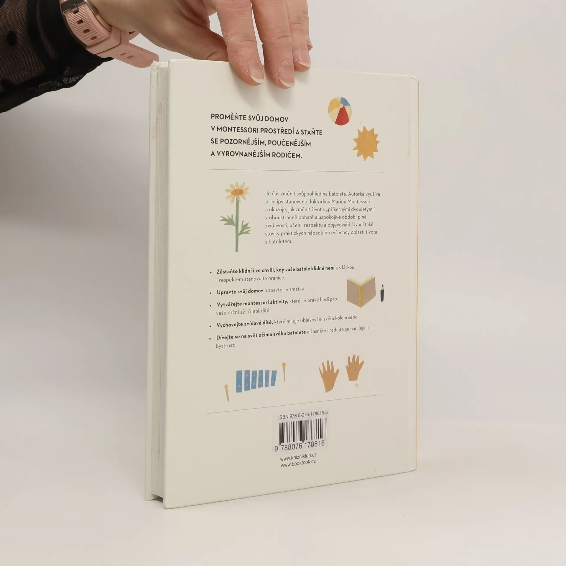 Srozumitelná a komplexní příručka k výchově batolat podle Montessori. Chcete najít způsob, jak si výchovu batolete víc užívat? Povzbuzovat svoje dítě k tomu, aby se rádo učilo? Dosáhnout toho, že dítě spolupracuje, aniž byste na něj křičeli, nebo se opakovali? Pak je tahle kniha pro vás to pravé. Montessori přístup vede děti k tomu, aby samy objevovaly svět vlastníma rukama a přebíraly odpovědnost, když je potřeba, zatímco dospělí fungují jako vedení. Tato kniha nabízí jednoduché, praktické rady, jak uplatnit zásady učení Montessori do každodenního života s dítětem ve věku do tří let.