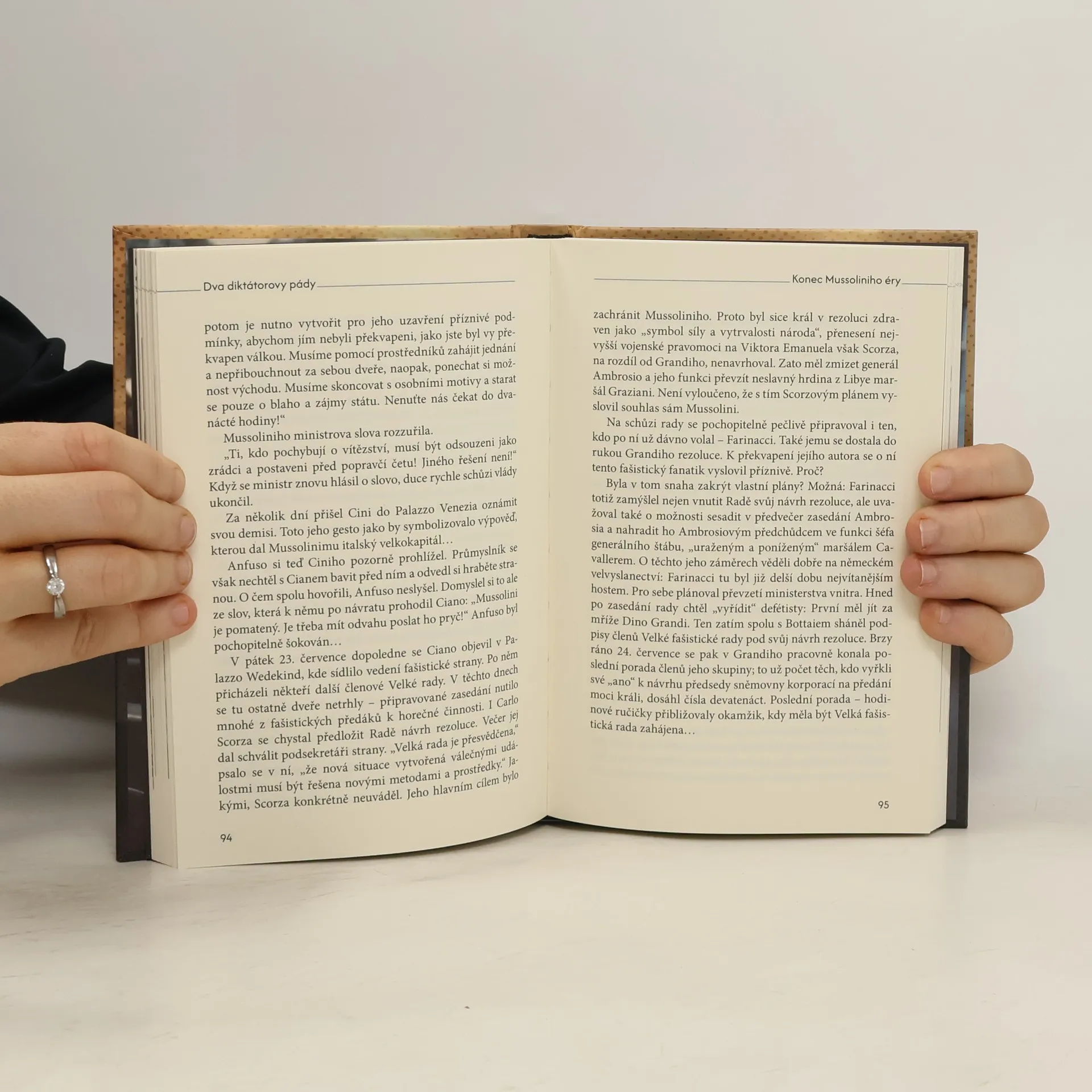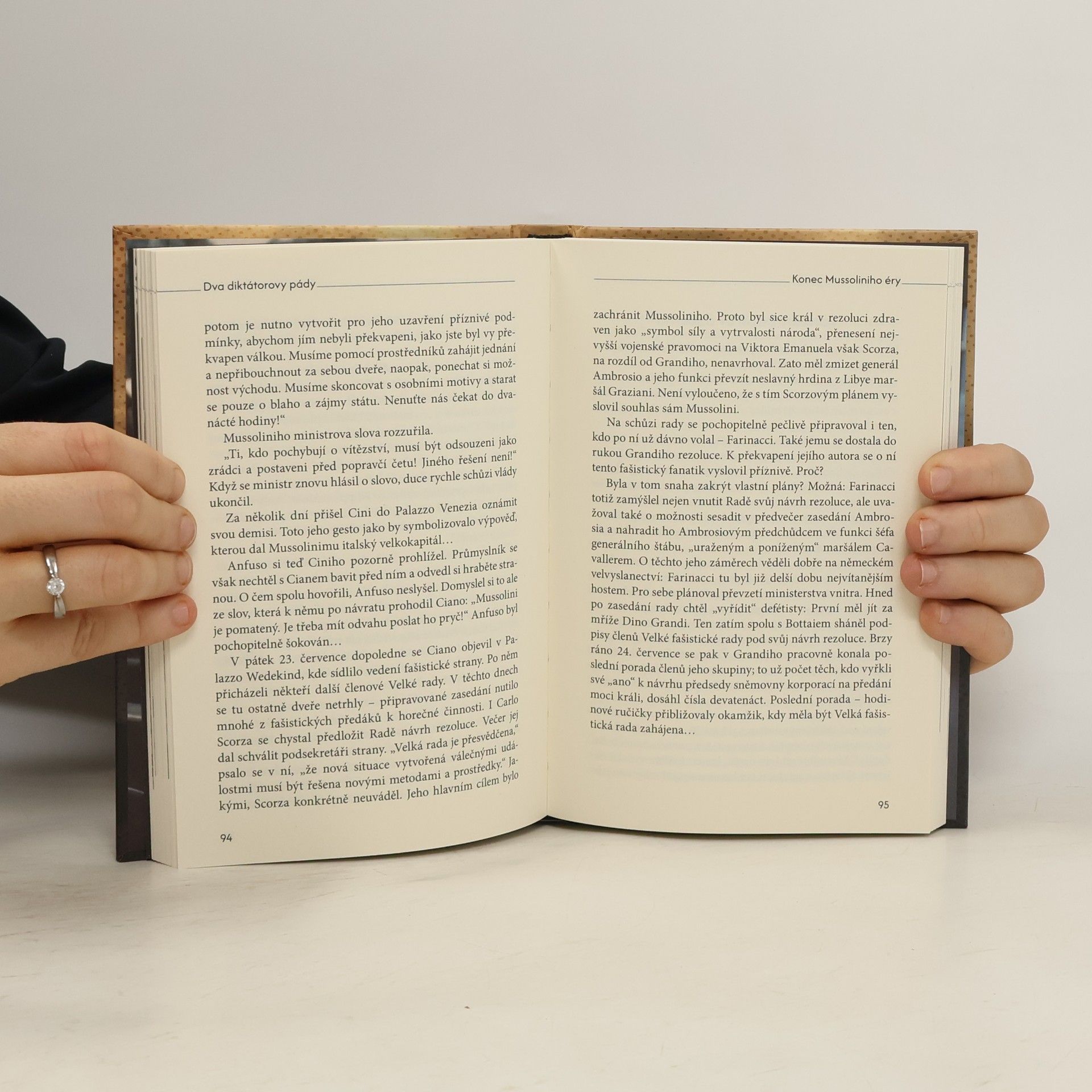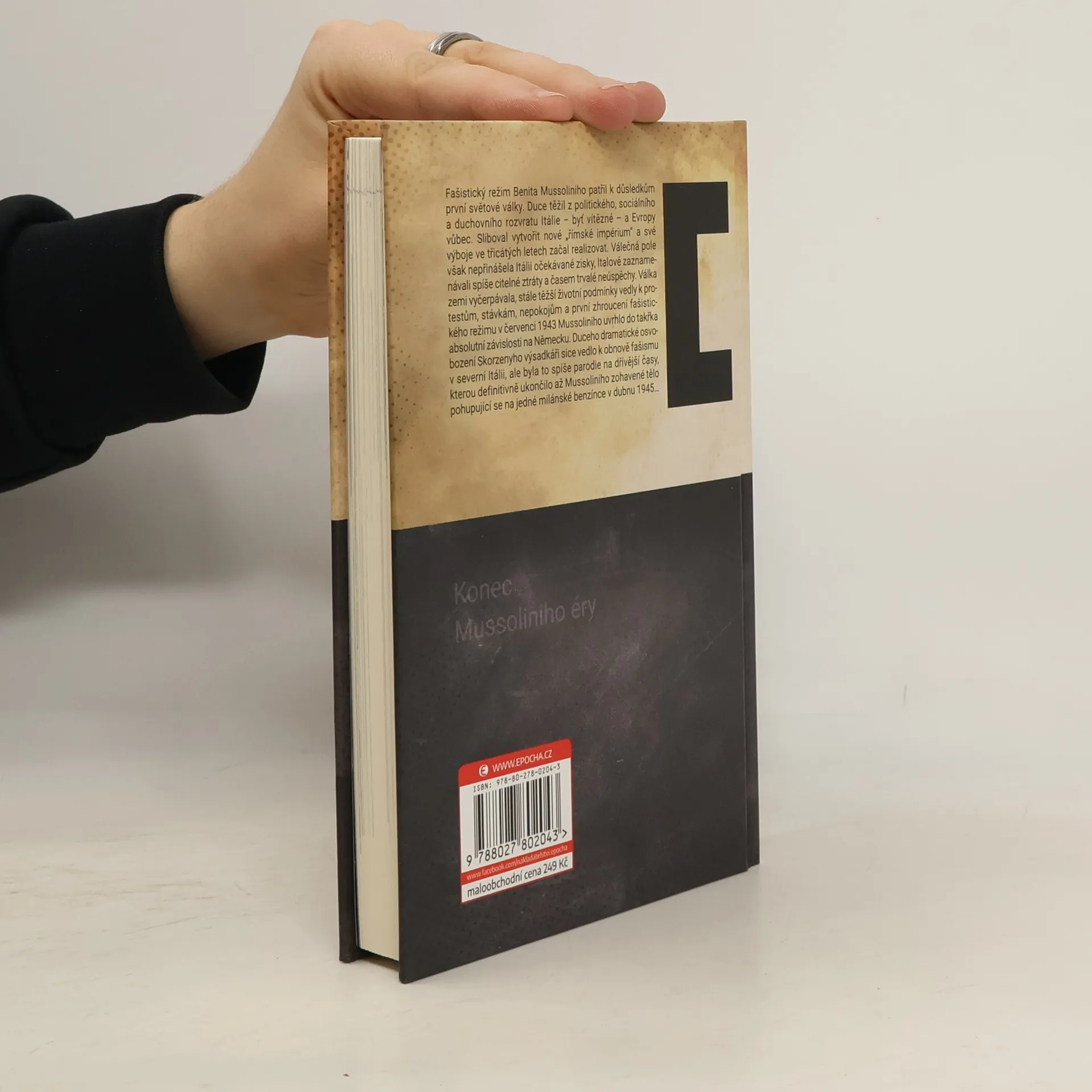 Fašistický režim italského duceho Benita Mussoliniho patřil k důsledkům první světové války. Mussolini těžil z politického, sociálního a duchovního rozvratu Itálie – byť vítězné – a Evropy vůbec. Sliboval vytvořit nové „římské impérium“ a své výboje ve 30. letech začal realizovat. Válečná pole však nepřinášela Itálii očekávané zisky, Italové zaznamenávali spíše citelné ztráty a časem trvalé neúspěchy. Válka zemi vyčerpávala, stále těžší životní podmínky vedly k protestům, stávkám, nepokojům. Duce se stal zcela závislým na spojenectví s Hitlerem, který se mu snažil pomáhat, aspoň zčásti zacelovat jeho prohry a dodávat mu sebevědomí. Autor s hlubokou znalostí reálií popisuje události spojené s dvojím pádem italského diktátora, který patří k podstatným stránkám druhé světové války. Není „vedlejší“, či „doprovodnou“ historií, ale válečným výsledkem z nejdůležitějších. Má dramatický průběh, obsah i smysl. Mussolini připravoval o budoucnost nejen Itálii, ale i Evropu.