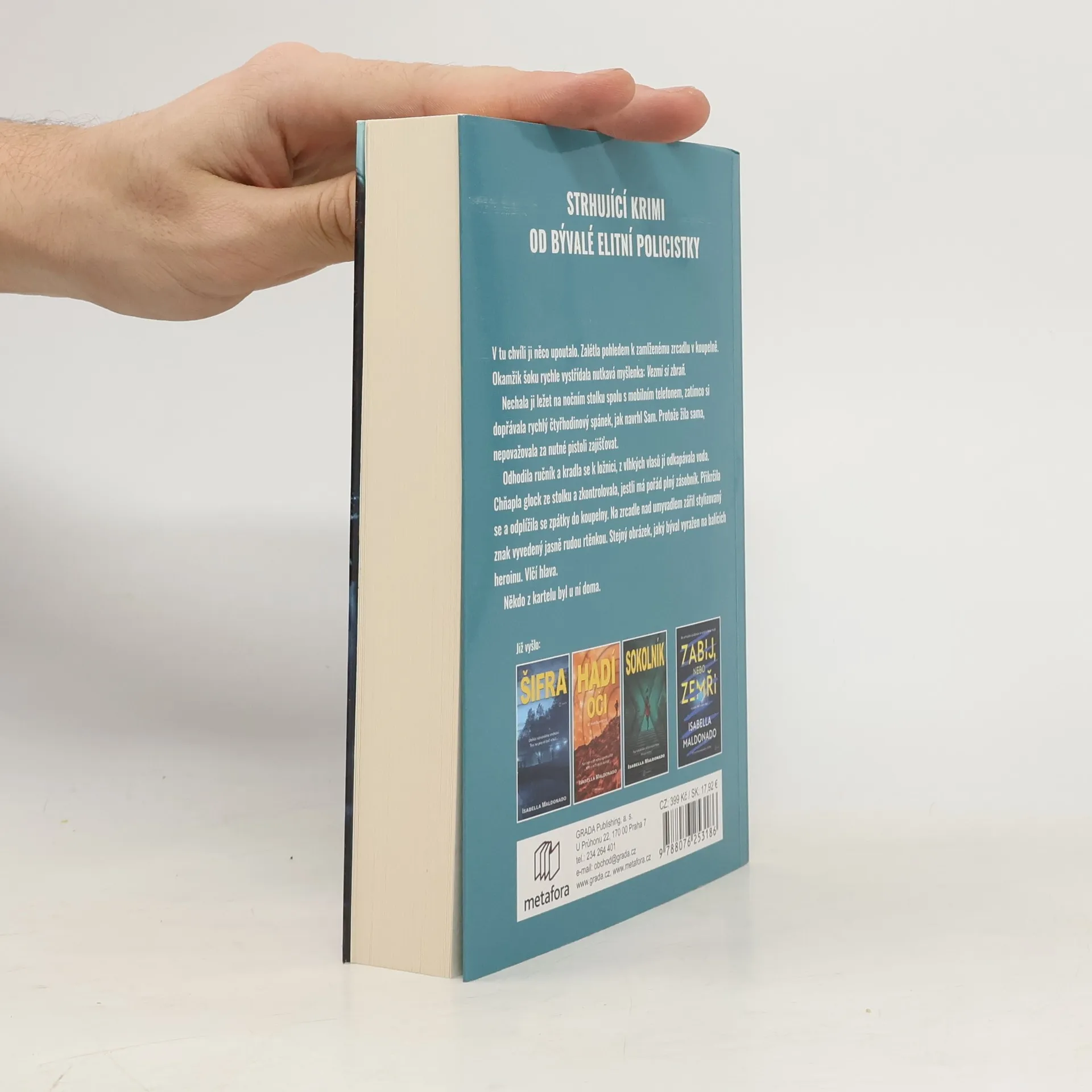 Detektiv Veranda Cruzová vede elitní protidrogový oddíl policie ve Phoenixu a má jediný, těžko splnitelný cíl: zničit nejmocnější zločinecký kartel na světě vedený Hectorem Villalobosem. Jen sama Veranda ví, že její posedlost kartelem má osobní a přísně tajný důvod – až do chvíle, kdy se její dvouletá práce v utajení zhroutí jako domeček z karet. Ona i její milovaná rodina se ocitnou v hledáčku obávaného drogového bosse Bartola a válka mezi strážci zákona a kartelem rázem získává velmi osobní příchuť. Tajná akce v poušti nabírá obrátky a Veranda s novým týmem z oddělení vražd je stále blíž. Dostat Bartola Villalobose je úkol číslo jedna, ale ani ona dosud netuší, jaké hrozivé tajemství se skrývá v minulosti… Je připravená vykoupit spravedlnost vlastním životem? Nová série od bestsellerové autorky, bývalé policistky a členky FBI Isabelly Maldonado. Vychází v překladu Dany Chodilové.