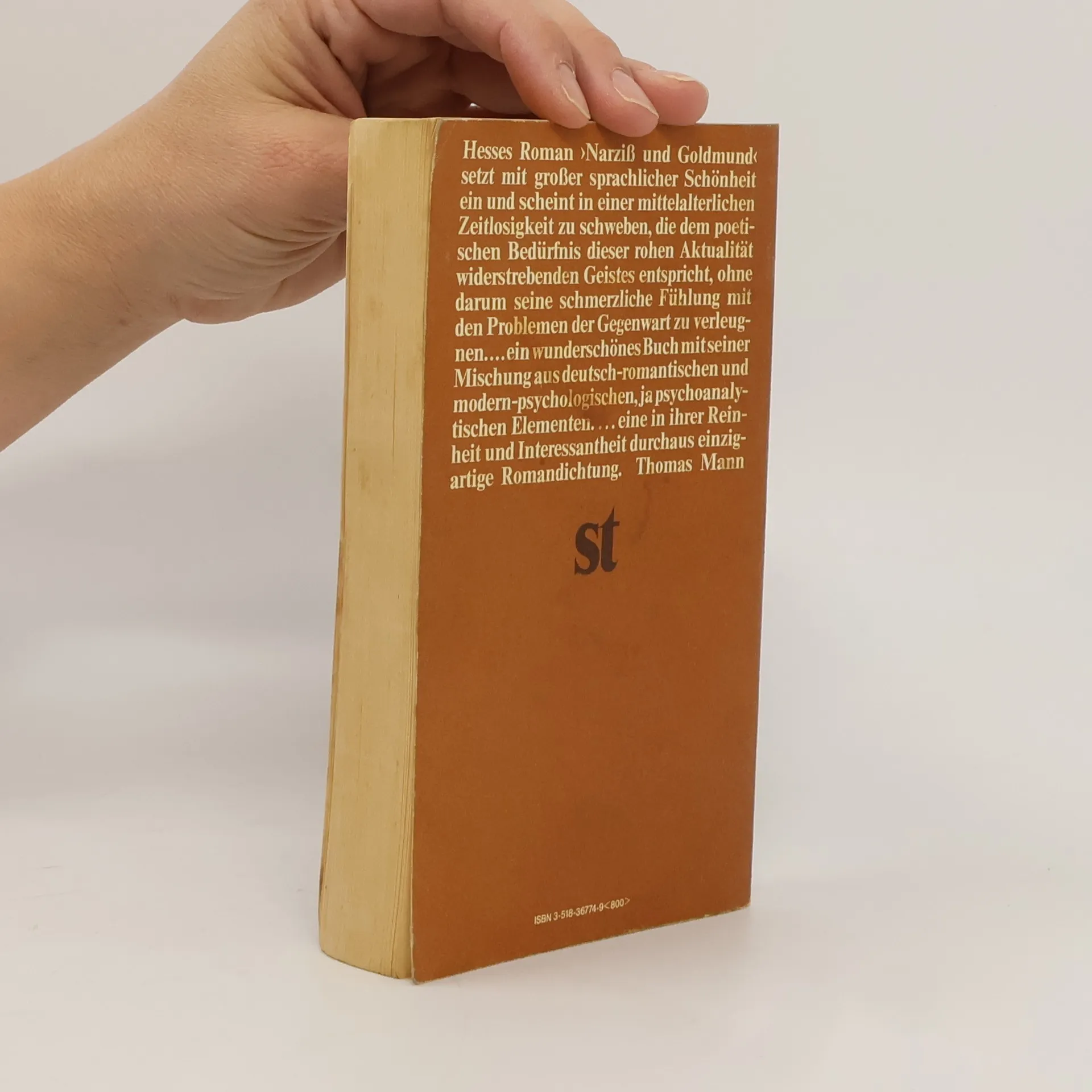 "Hesses Roman "Narziß und Goldmund" setzt mit großer sprachlicher Schönheit ein und scheint in einer mittelalterlichen Zeitlosigkeit zu schweben, die dem poetischen Bedürfnis dieses der rohen Aktualität widerstrebenden Geistes entspricht, ohne darum seine schmerzliche Fühlung mit den Problemen der Gegenwart zu verleugnen...ein wunderschönes Buch mit seiner Mischung aus deutsch-romantischen und modern-psychologischen, ja psychoanalytischen Elementen...eine in ihrer Reinheit und Interessantheit durchaus einzigartige Romandichtung." Thomas Mann