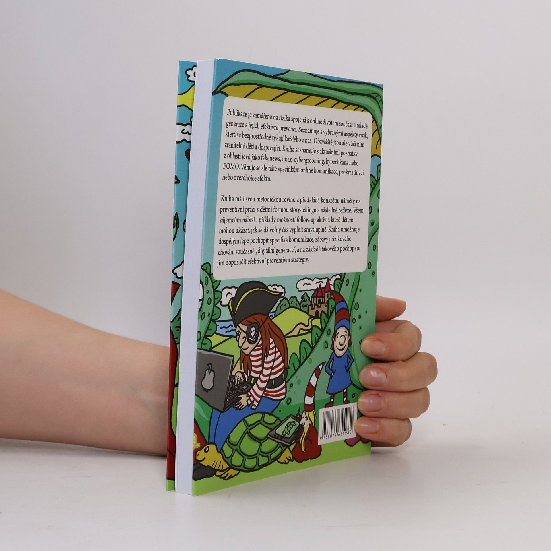 Průvodce online světem v edukačních a preventivních souvislostech Publikace je zaměřena na rizika spojená s online životem současné mladé generace a na jejich efektivní prevenci. Seznamuje s vybranými aspekty rizik, která se bezprostředně týkají každého z nás. Obzvláště jsou ale vůčinim zranitelné děti a dospívající. Přináší aktuální poznatky z oblasti jevů jako fake news, hoax, cybergrooming, kyberšikana nebo FoMo. Věnuje se ale také specifikům online komunikace, prokrastinaci nebo overchoice efektu. Publikace má i svou metodickou rovinu a předkládá konkrétní náměty na preventivní práci s dětmi formou story-tellingu a následné reflexe. Všem zájemcům nabízí i příklady možností follow-up aktivit, které dětem mohou ukázat, jak se dá volný čas vyplnit smysluplně. Umožňuje dospělým lépe pochopit specifika komunikace, zábavy i rizikového chování současné "digitální generace", a na základě takového pochopení dětem doporučit efektivní preventivní strategie.
