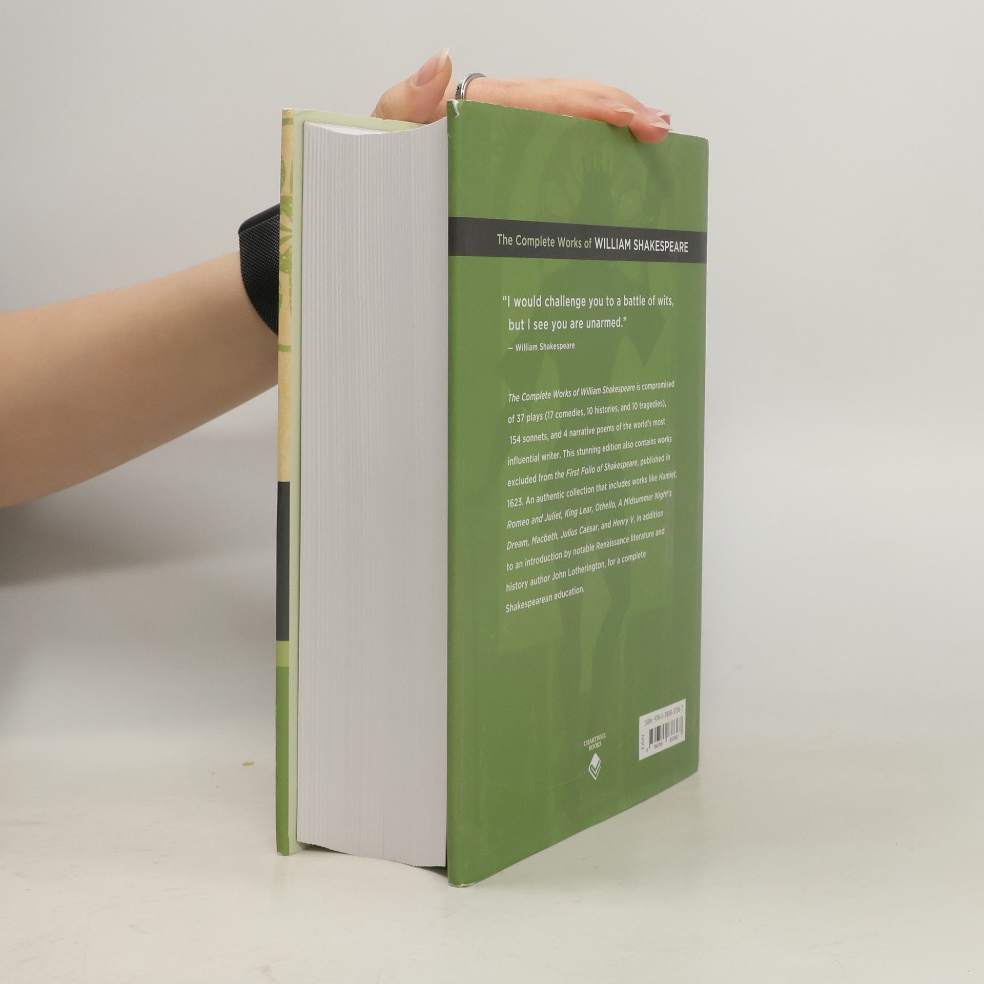 "I would challenge you to a battle of wits, but I see you are unarmed." —William Shakespeare Arm yourself with this volume from the Charwell Classic series, The Complete Works of William Shakespeare, including 17 comedies, 10 histories, 10 tragedies, 154 sonnets, and 4 narrative poems of the world's most influential writer. This collection includes poems and plays that were excluded in Shakespeare's First Folio of 1623 to make one complete, authentic collection. For Shakespeare and poetry fans worldwide, this stunning hardcover edition includes an introduction by the widely known Renaissance literature and history author John Lotherington, making this the perfect gift. The Complete Works of William Shakespeare contains essential reading like Hamlet, Romeo & Juliet, King Lear, Othello, A Midsummer Night's Dream, Macbeth, Julius Caesar, and Henry V, alongside many lesser-known gems for a complete Shakespearean education.