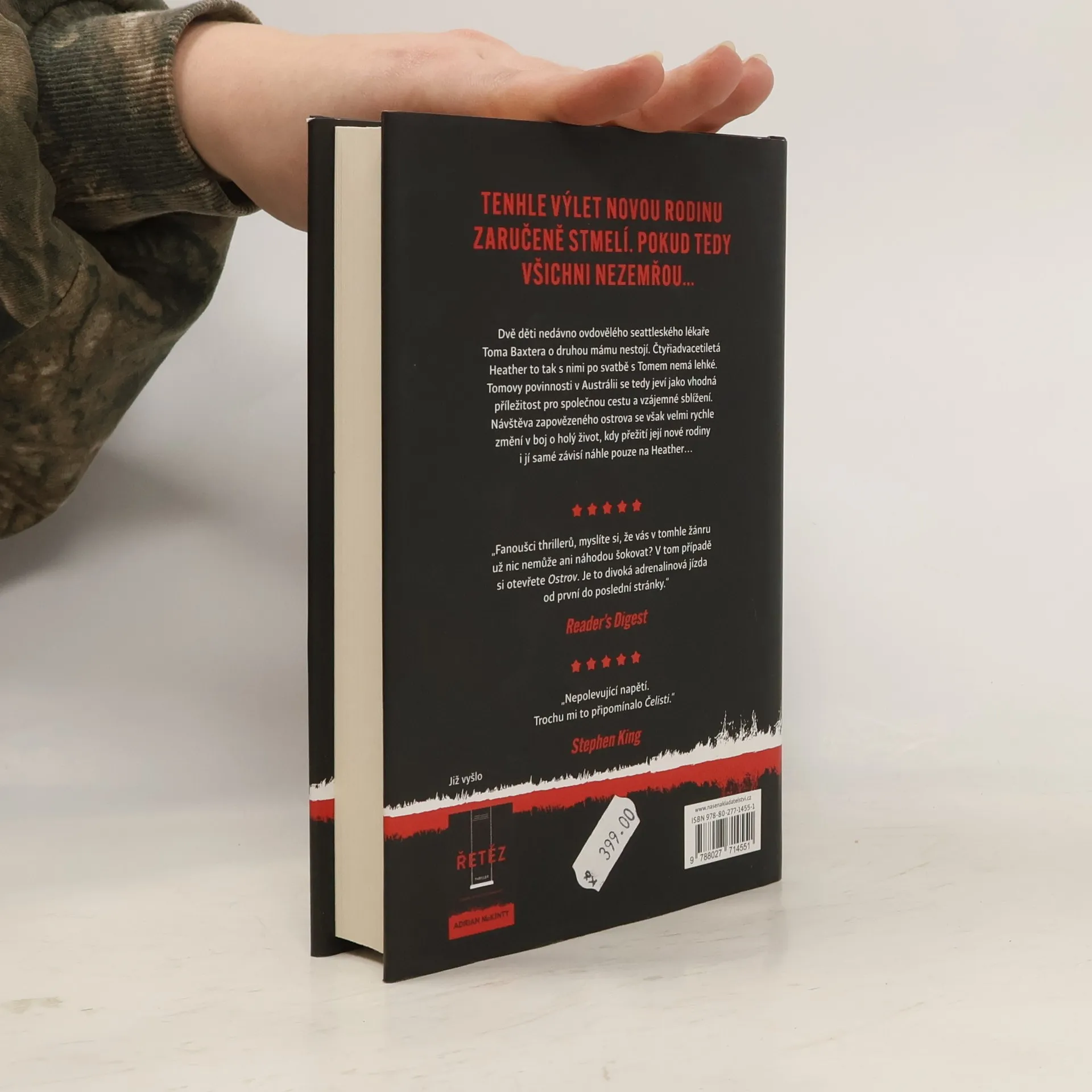 Thriller uznávaného autora se odehrává v divočině na izolovaném australském ostrově, kde bojují o život dva sourozenci a jejich nevlastní matka. Po přestěhování do Seattlu se Heather provdá za Toma Baxtera, ovdovělého lékaře s malým synem a dospívající dcerou. Pracovní dovolená na vzdáleném kontinentě jim připadá jako výborný způsob, jak novou rodinu stmelit, ale v australské pustině hrají unavené a pásmovou nemocí stižené děti "nové mamince" pěkně na nervy. Když na výletě objeví odlehlý a návštěvníkům nepřístupný Holandský ostrov, podaří se jim dostat na přívoz a podniknout dobrodružnou výpravu do míst bez signálu. Na ostrově ovládaném semknutou skupinou místních ale všechno nabere podivný směr. Po náhlé nehodě Heather s dětmi zůstanou bez Toma a musejí utíkat sami. Na Heather leží odpovědnost za záchranu, v drsné australské divočině číhá bezpočet nebezpečí a místní je hodlají zabít. Heather se celý život podceňovala, ale nyní ví, že pouze ona může novou rodinu přivést zpátky domů. Nakladatelská anotace. Kráceno.