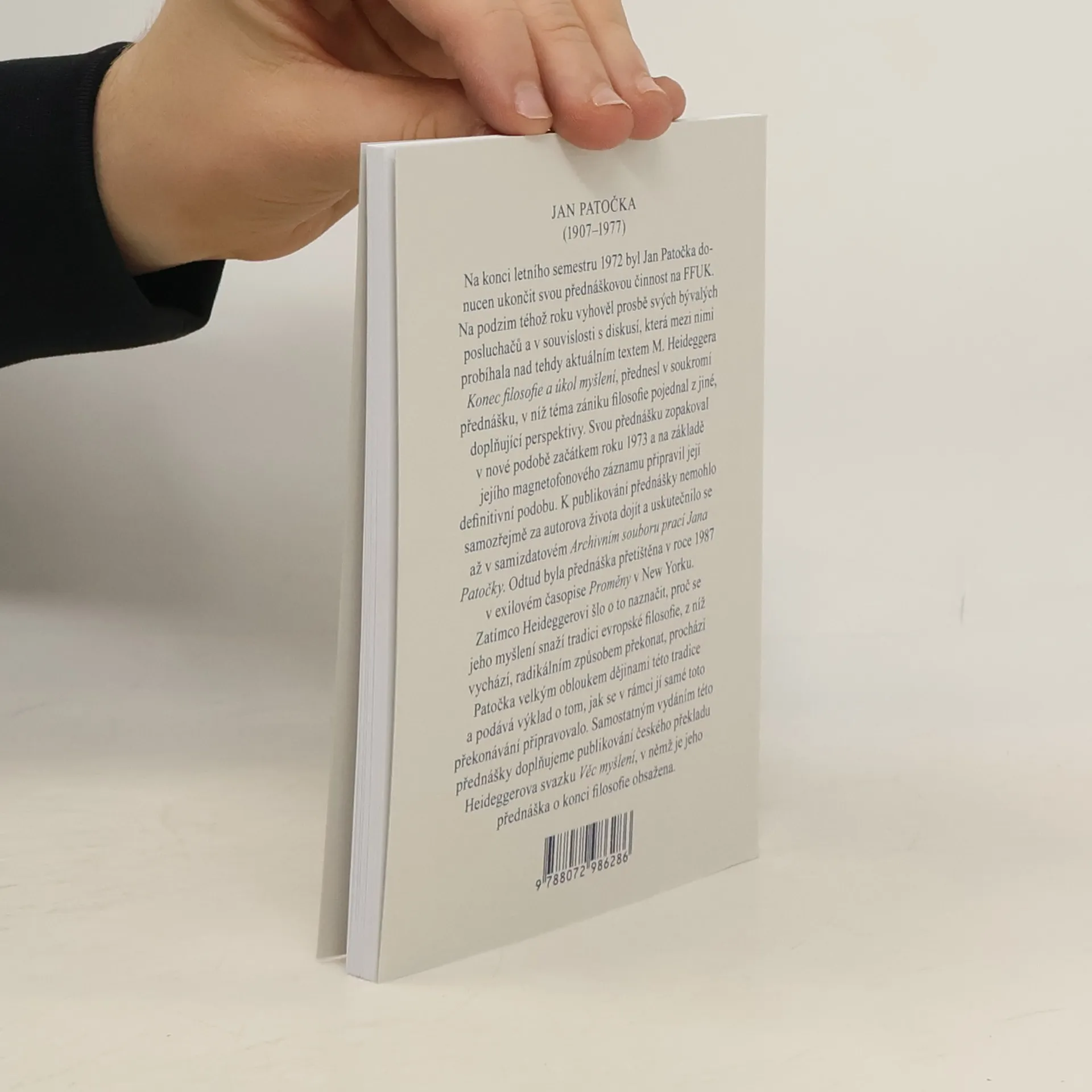 Na konci letního semestru 1972 byl Jan Patočka donucen ukončit svou přednáškovou činnost na FFUK. Na podzim téhož roku vyhověl prosbě svých bývalých posluchačů a v souvislosti s diskusí, která mezi nimi probíhala nad tehdy aktuálním textem M. Heideggera Konec filosofie a úkol myšlení, přednesl v soukromí přednášku, v níž téma zániku filosofie pojednal z jiné, doplňující perspektivy. Svou přednášku zopakoval v nové podobě začátkem roku 1973 a na základě jejího magnetofonového záznamu připravil její definitivní podobu. K publikování přednášky nemohlo samozřejmě za autorova života dojít a uskutečnilo se až v samizdatovém Archivním souboru prací Jana Patočky. Odtud byla přednáška přetištěna v roce 1987 v exilovém časopise Proměny v New Yorku. Zatímco Heideggerovi šlo o to naznačit, proč se jeho myšlení snaží tradici evropské filosofie, z níž vychází, radikálním způsobem překonat, prochází Patočka velkým obloukem dějinami této tradice a podává výklad o tom, jak se v rámci jí samé toto překonávání připravovalo. Samostatným vydáním této přednášky doplňujeme publikování českého překladu Heideggerova svazku Věc myšlení, v němž je jeho přednáška o konci filosofie obsažena.