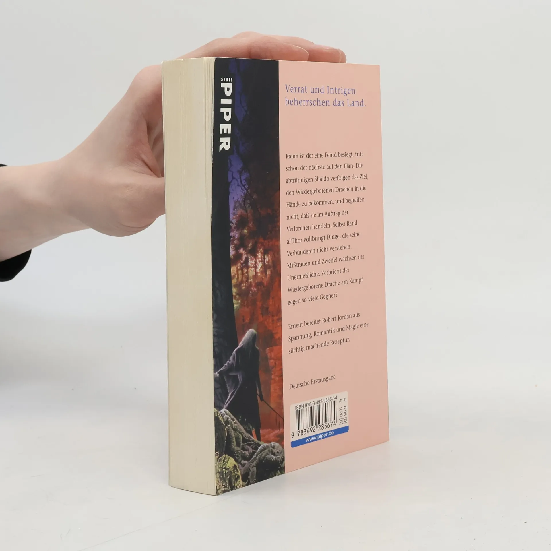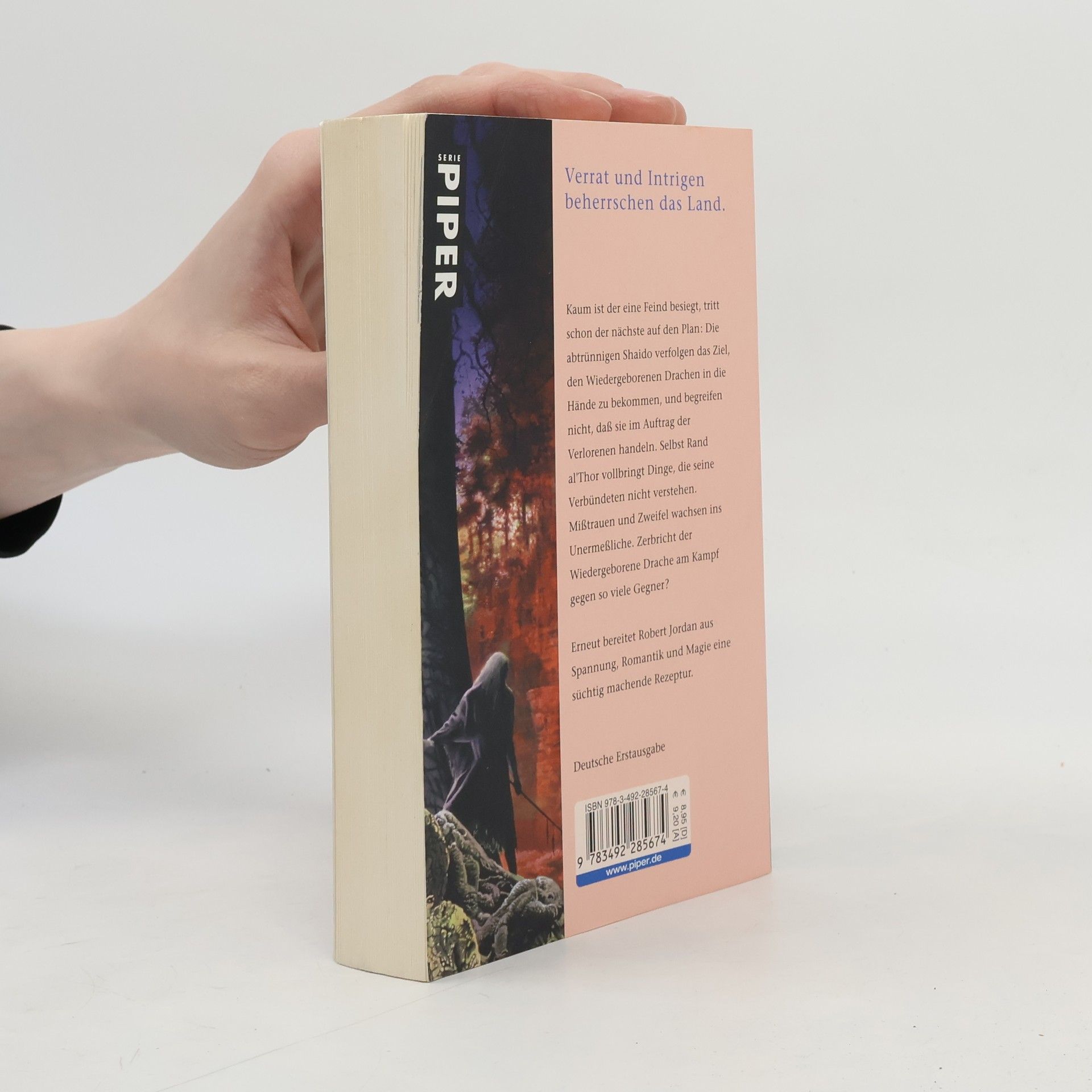 Kaum ist der eine Feind besiegt, tritt schon der nächste auf den Plan: Die abtrünnigen Shaido verfolgen das Ziel, den Wiedergeborenen Drachen in die Hände zu bekommen, und begreifen nicht, dass sie im Auftrag der Verlorenen handeln. Selbst Rand al'Thor vollbringt Dinge, die seine Verbündeten nicht verstehen. Misstrauen und Zweifel wachsen ins Unermessliche. Zerbricht der Wiedergeborene Drache am Kampf gegen so viele Gegner? – Erneut bereitet Robert Jordan aus Spannung, Romantik und Magie eine süchtig machende Rezeptur.