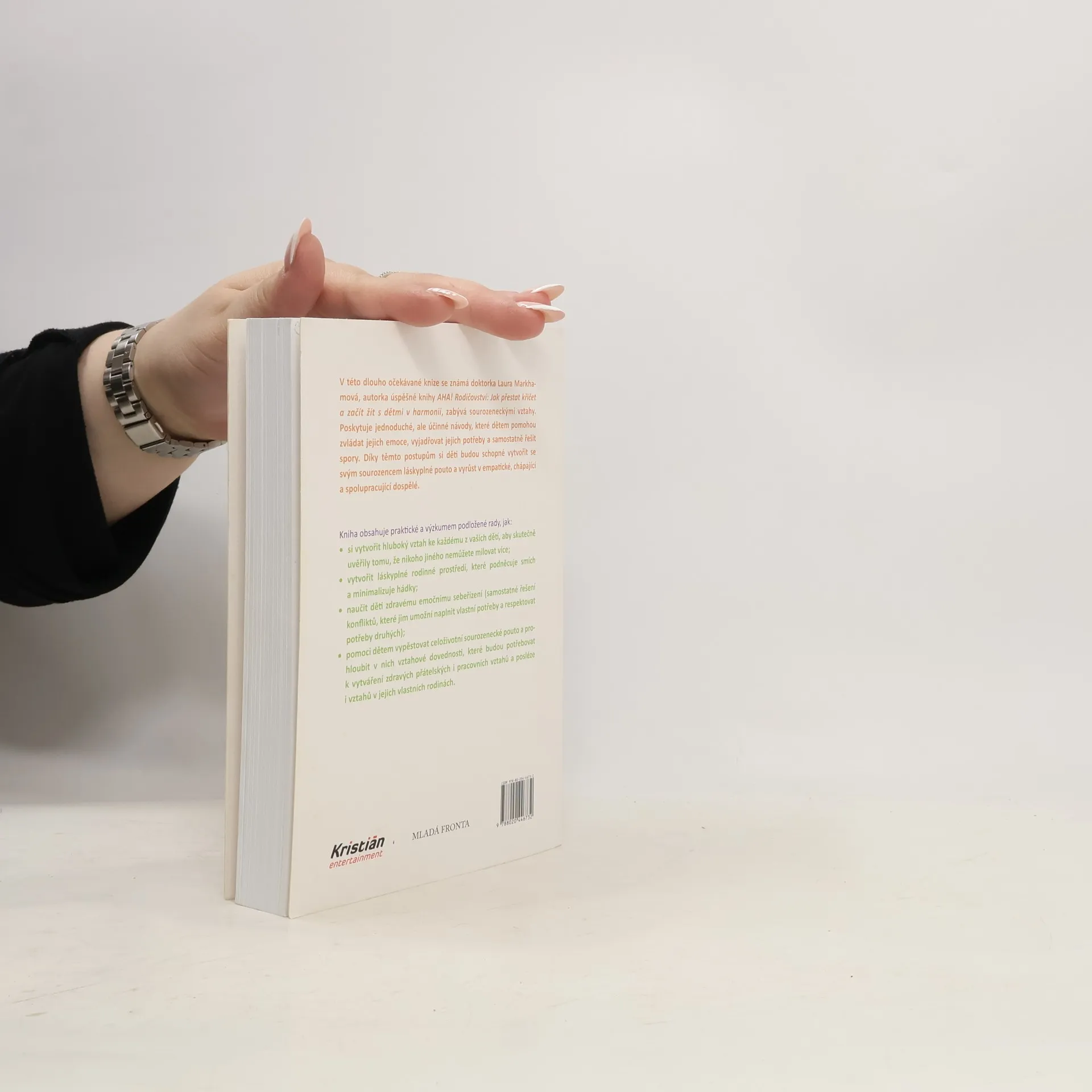 Jak zabránit sporům mezi sourozenci a vychovat z nich přátele na celý život. V této dlouho očekávané knize se známá doktorka Laura Markhamová, autorka úspěšné knihy AHA! Rodičovství: Jak přestat křičet a začít s dětmi žít v harmonii, zabývá sourozeneckými vztahy. Poskytuje jednoduché, ale účinné návody, které dětem pomohou zvládat jejich emoce, vyjadřovat jejich potřeby a samostatně řešit spory. Díky těmto postupům si děti budou schopné vytvořit se svým sourozencem láskyplné pouto a vyrůst v empatické, chápající a spolupracující dospělé. Kniha obsahuje praktické a výzkumem podložené rady, jak: - si vytvořit hluboký vztah ke každému z vašich dětí, aby skutečně uvěřily tomu, že nikoho jiného nemůžete milovat více; - vytvořit láskyplné rodinné prostředí, které podněcuje smích a minimalizuje hádky; - naučit děti zdravému emočnímu sebeřízení (samostatné řešení konfliktů, které jim umožní naplnit vlastní potřeby a respektovat potřeby druhých); - pomoci dětem vypěstovat celoživotní sourozenecké pouto a prohloubit v nich vztahové dovednosti, které budou potřebovat k vytváření zdravých přátelských i pracovních vztahů a posléze i vztahů v jejich vlastních rodinách.