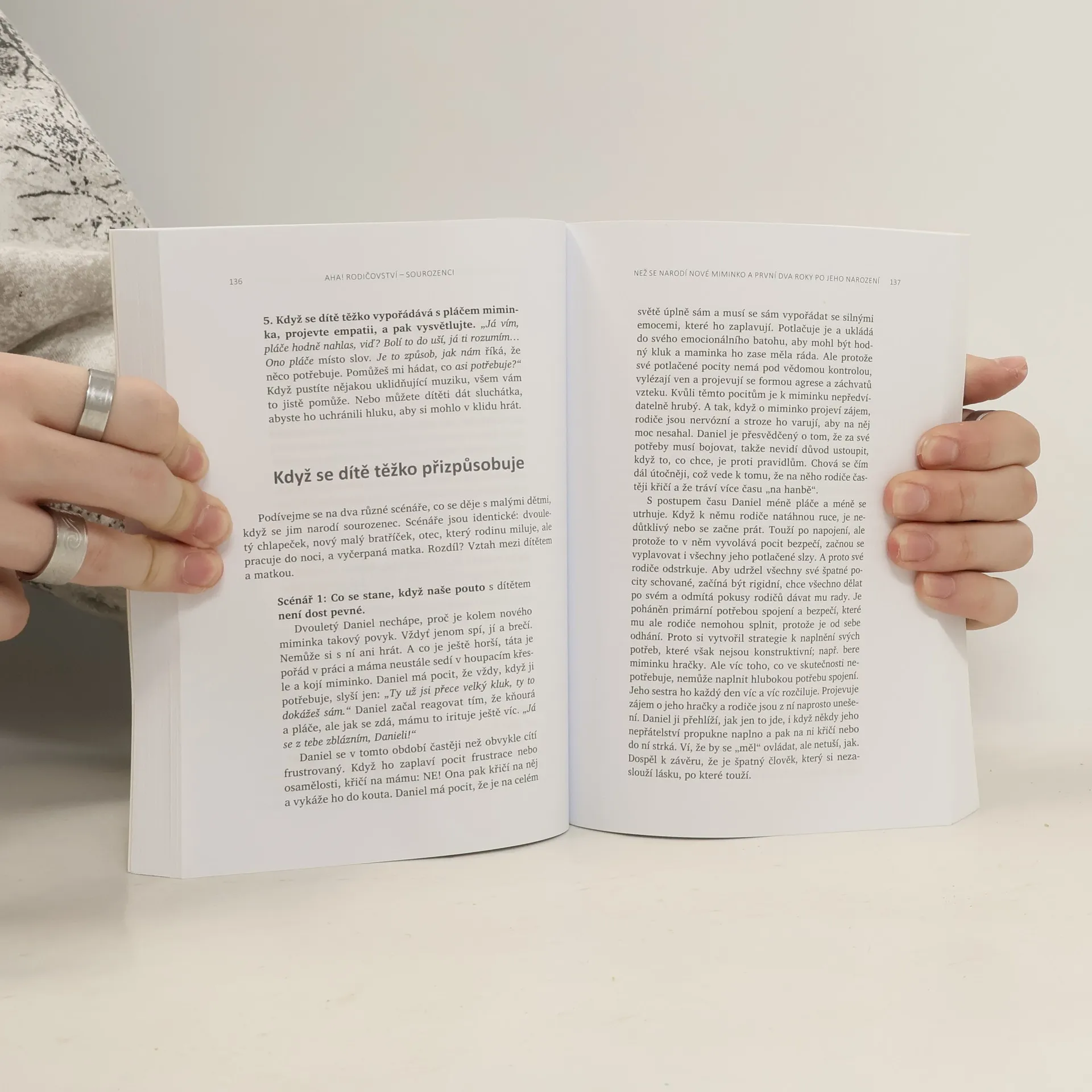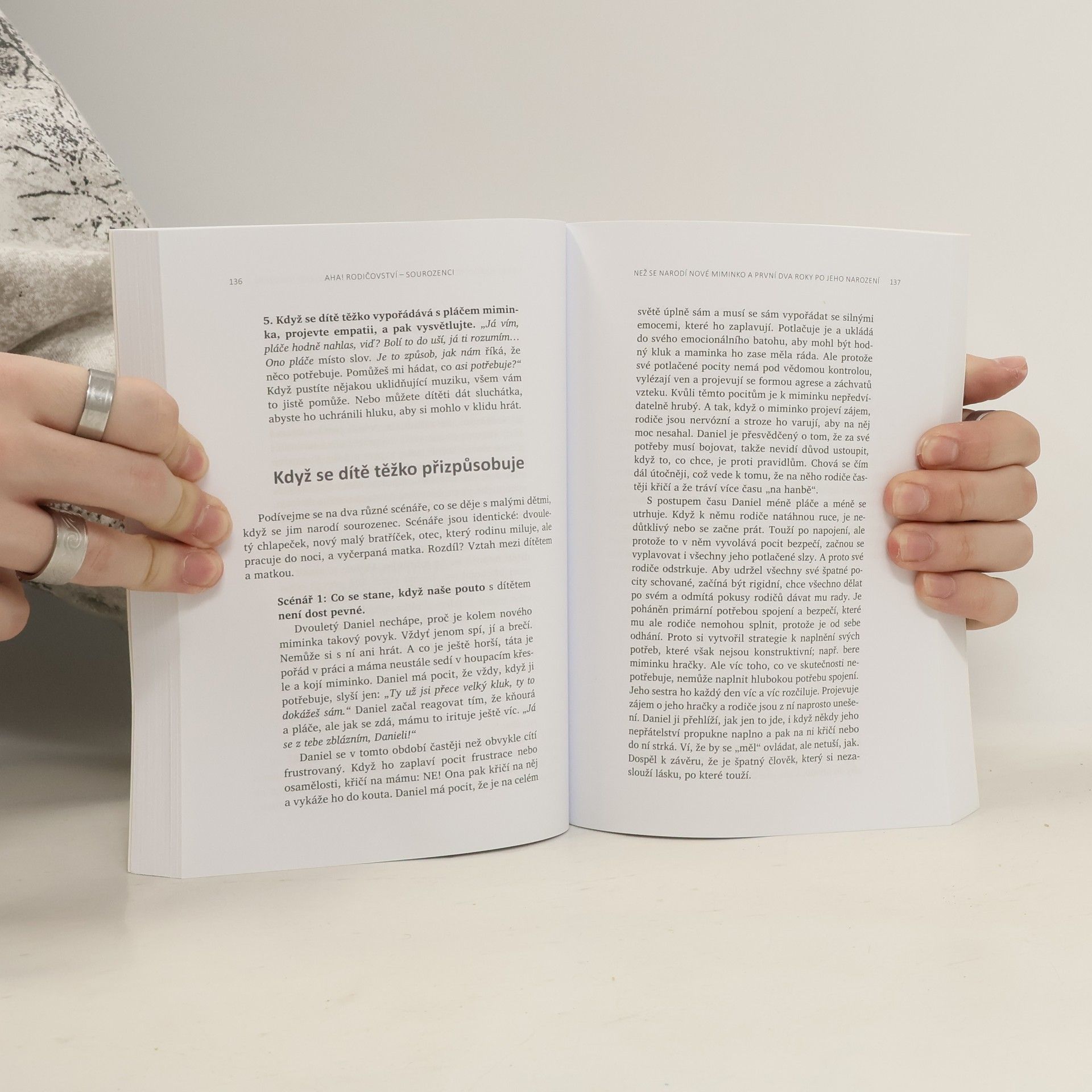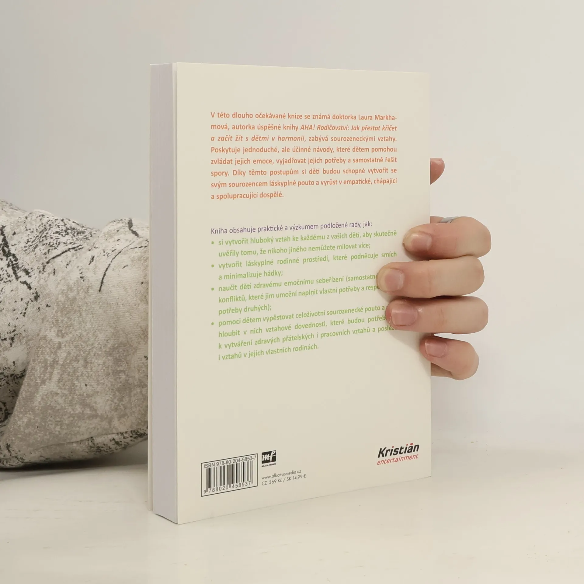 Jak zabránit sporům mezi sourozenci a vychovat z nich přátele na celý život. V této dlouho očekávané knize se známá doktorka Laura Markhamová, autorka úspěšné knihy AHA! Rodičovství: Jak přestat křičet a začít s dětmi žít v harmonii, zabývá sourozeneckými vztahy. Poskytuje jednoduché, ale účinné návody, které dětem pomohou zvládat jejich emoce, vyjadřovat jejich potřeby a samostatně řešit spory. Díky těmto postupům si děti budou schopné vytvořit se svým sourozencem láskyplné pouto a vyrůst v empatické, chápající a spolupracující dospělé. Kniha obsahuje praktické a výzkumem podložené rady, jak: - si vytvořit hluboký vztah ke každému z vašich dětí, aby skutečně uvěřily tomu, že nikoho jiného nemůžete milovat více; - vytvořit láskyplné rodinné prostředí, které podněcuje smích a minimalizuje hádky; - naučit děti zdravému emočnímu sebeřízení (samostatné řešení konfliktů, které jim umožní naplnit vlastní potřeby a respektovat potřeby druhých); - pomoci dětem vypěstovat celoživotní sourozenecké pouto a prohloubit v nich vztahové dovednosti, které budou potřebovat k vytváření zdravých přátelských i pracovních vztahů a posléze i vztahů v jejich vlastních rodinách.