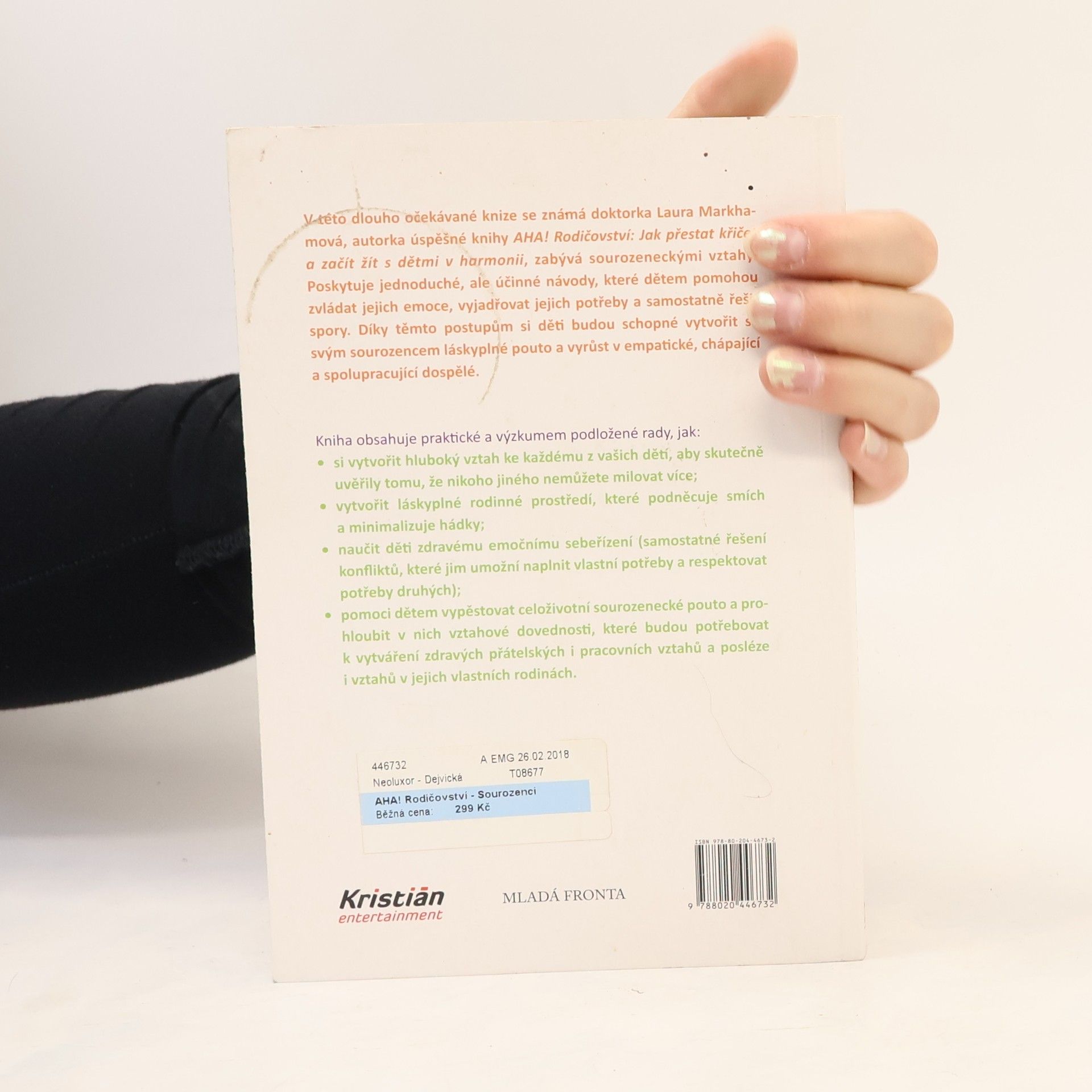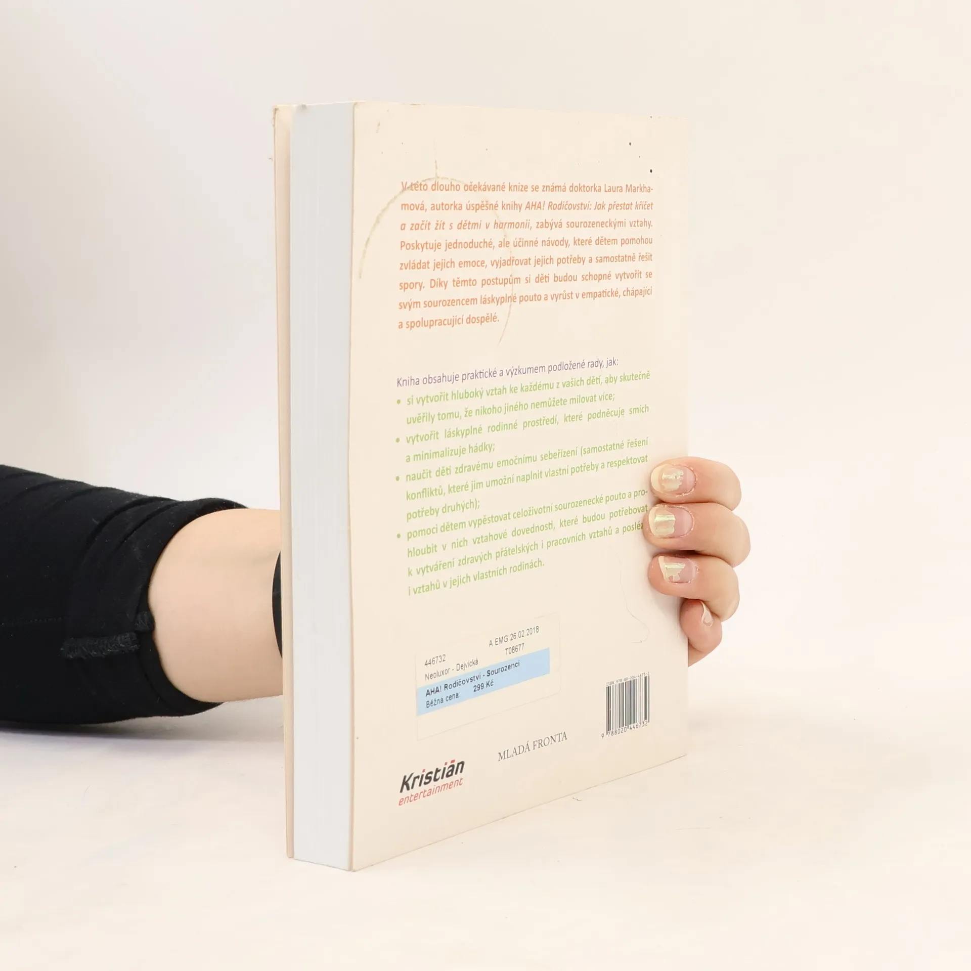 Jak zabránit sporům mezi sourozenci a vychovat z nich přátele na celý život. V této dlouho očekávané knize se známá doktorka Laura Markhamová, autorka úspěšné knihy AHA! Rodičovství: Jak přestat křičet a začít s dětmi žít v harmonii, zabývá sourozeneckými vztahy. Poskytuje jednoduché, ale účinné návody, které dětem pomohou zvládat jejich emoce, vyjadřovat jejich potřeby a samostatně řešit spory. Díky těmto postupům si děti budou schopné vytvořit se svým sourozencem láskyplné pouto a vyrůst v empatické, chápající a spolupracující dospělé. Kniha obsahuje praktické a výzkumem podložené rady, jak: - si vytvořit hluboký vztah ke každému z vašich dětí, aby skutečně uvěřily tomu, že nikoho jiného nemůžete milovat více; - vytvořit láskyplné rodinné prostředí, které podněcuje smích a minimalizuje hádky; - naučit děti zdravému emočnímu sebeřízení (samostatné řešení konfliktů, které jim umožní naplnit vlastní potřeby a respektovat potřeby druhých); - pomoci dětem vypěstovat celoživotní sourozenecké pouto a prohloubit v nich vztahové dovednosti, které budou potřebovat k vytváření zdravých přátelských i pracovních vztahů a posléze i vztahů v jejich vlastních rodinách.