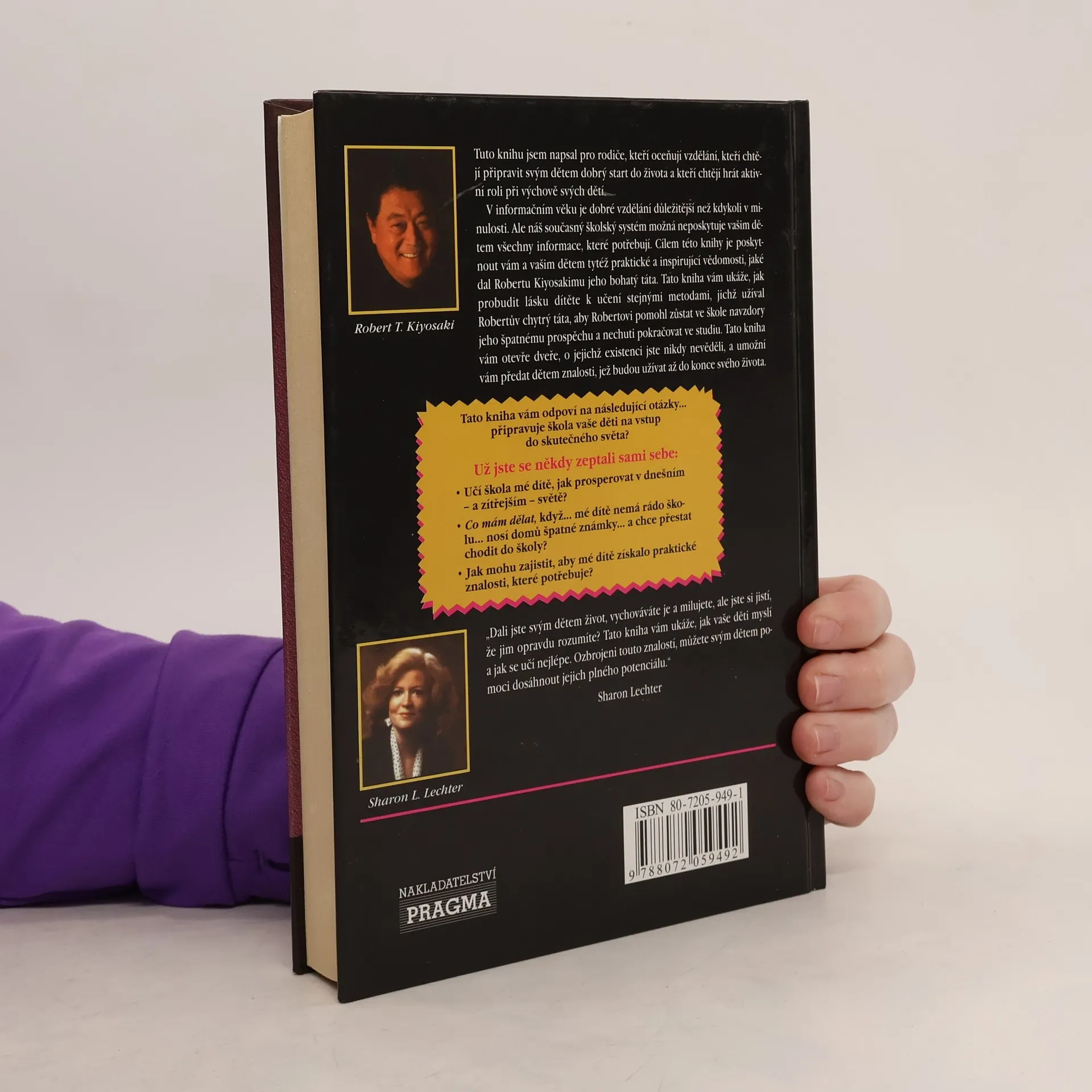 Tuto knihu jsem napsal pro rodiče, kteří oceňují vzdělání, kteří chtějí připravit svým dětem dobrý start do života a kteří chtějí hrát aktivní roli při výchově svých dětí. V informačním věku je dobré vzdělání důležitější než kdykoli v minulosti. Ale náš současný školský systém možná neposkytuje vašim dětem všechny informace, které potřebují. Cílem této knihy je poskytnout vám a vašim dětem tytéž praktické a inspirující vědomosti, jaké dal Robertu Kiyosakimu jeho bohatý táta. Tato kniha vám ukáže, jak probudit lásku dítěte k učení stejnými metodami, jichž užíval Robertův chytrý táta, aby Robertovi pomohl zůstat ve škole navzdory jeho špatnému prospěchu a nechuti pokračovat ve studiu. Tato kniha vám otevře dveře, o jejichž existenci jste nikdy nevěděli, a umožní vám předat dětem znalosti, jež budou užívat až do konce svého života.