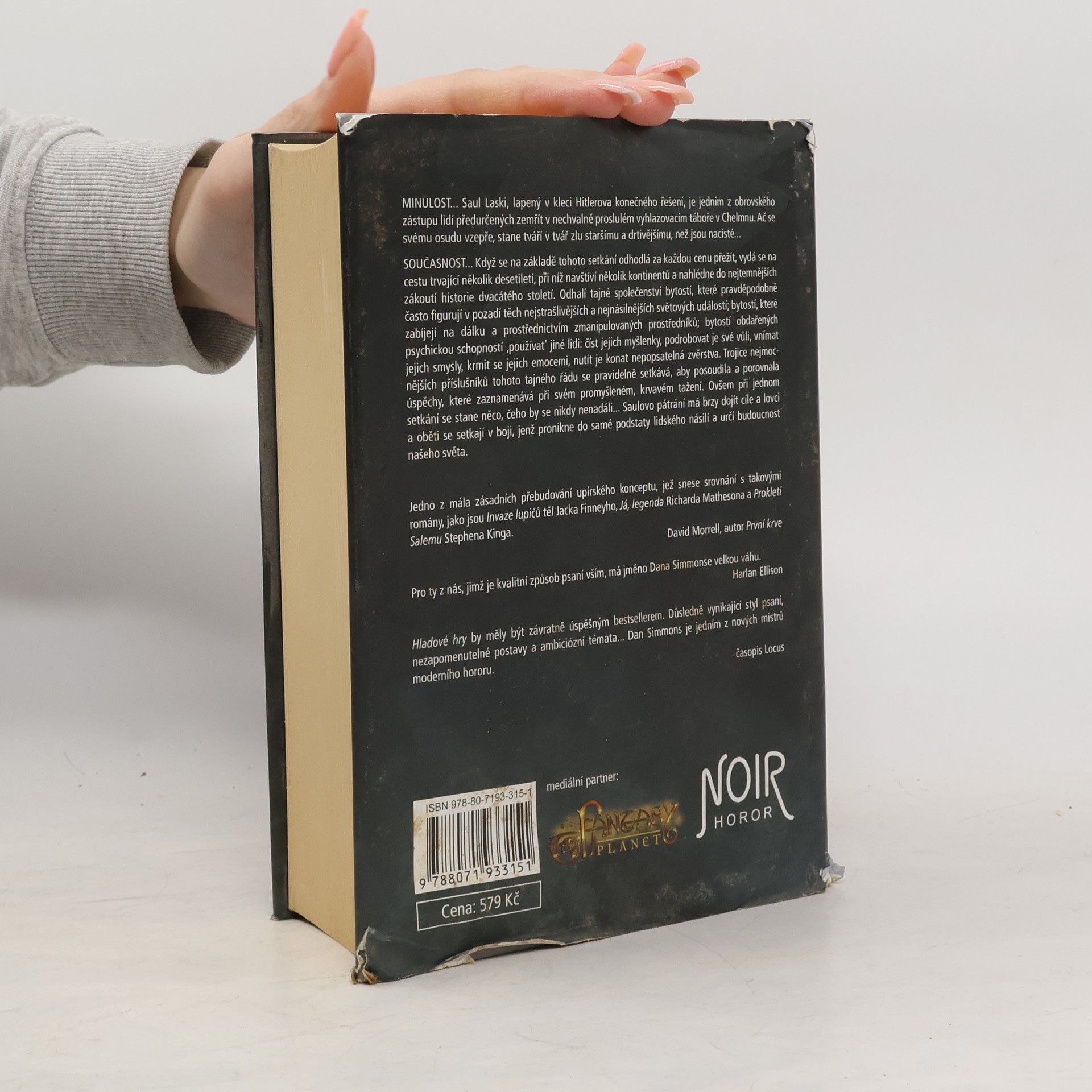 Minulost... Saul Laski, lapený v kleci Hitlerova konečného řešení, je jedním z obrovského zástupu lidí předurčených zemřít v nechvalně proslulém vyhlazovacím táboře v Chelmnu. Ač se svému osudu vzepře, stane tváří v tvář zlu staršímu a drtivějšímu než jsou nacisté... Současnost... Když se na základě tohoto setkání odhodlá za každou cenu přežít, vydá se na cestu trvající několik desetiletí, při níž navštíví několik kontinentů a nahlédne do nejtemnějších zákoutí historie dvacátého století. Odhalí tajné společenství bytostí, které pravděpodobně často figurují v pozadí těch nejstrašlivějších a nejnásilnějších světových událostí; bytostí, které zabíjejí na dálku a prostřednictvím zmanipulovaných prostředníků; bytostí obdařených psychickou schopností „používat" jiné lidi: číst jejich myšlenky, podrobovat je své vůli, vnímat jejich smysly, krmit se jejich emocemi, nutit je konat nepopsatelná zvěrstva. Trojice nejmocnějších příslušníků tohoto tajného řádu se pravidelně setkává, aby posoudila a porovnala úspěchy, které zaznamenává při svém promyšleném, krvavém tažení. Ovšem při jednom setkání se stane něco, čeho by se nikdy nenadáli... Saulovo pátrání má brzy dojít cíle a lovci a oběti se setkají v boji, jenž pronikne do samé podstaty lidského násilí a určí budoucnost našeho světa.