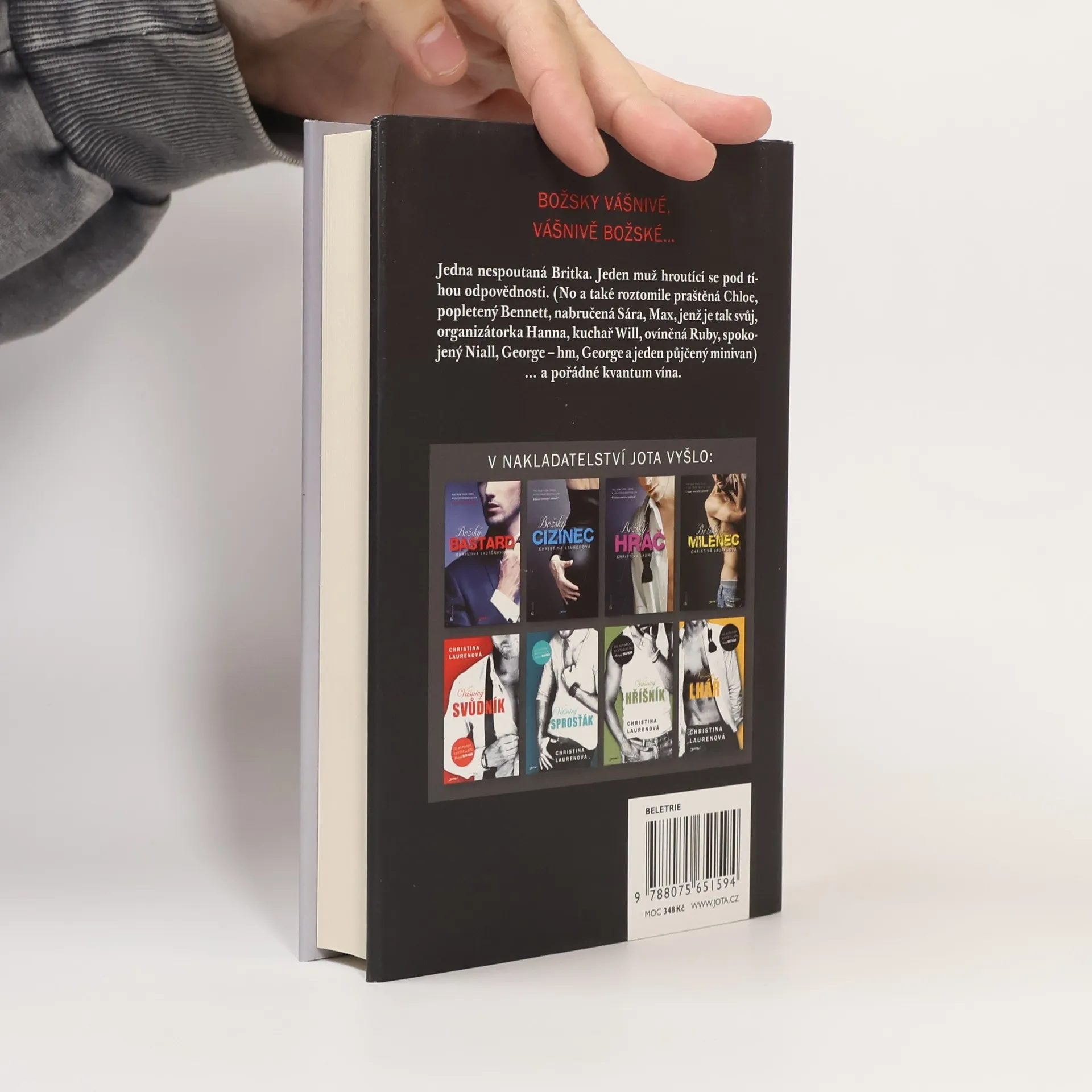 Svérázná Britka a suchar z Bostonu: tak rozdílné povahy jako Pippa a Jensen aby pohledal. Ona je pro každou srandu, on se hroutí pod tíhou odpovědnosti. Řízením osudu se tihle dva setkají na společné dovolené organizované partičkou přátel, kterou věrné čtenářky znají již z předchozích dílů oblíbené série Božský. Putování po vinicích je pro Pippu, jež se právě vzpamatovává z nechutného rozchodu, vítanou příležitostí, jak na všechno zapomenout. Jensen se výletu účastní tak trochu z donucení a jen doufá, že vína bude dost, aby tu nudu přežil. Nuda se však nekoná. Celý výlet se změní v bláznivý sled událostí a zprvu improvizovaný vztah dvou cizích lidí postupně přeroste v hlubokou vášeň. V závěrečném dílu série Božský se uzavírají osudy hrdinů, které si čtenářky Christiny Laurenové tolik oblíbili. I v této knize najdeme vše, čím si autorky své čtenáře tak podmanily: drama i humor, vtipné dialogy, lásku pošetilou i vášnivou a zejména sex, který si hrdinové románu umí náležitě vychutnat.