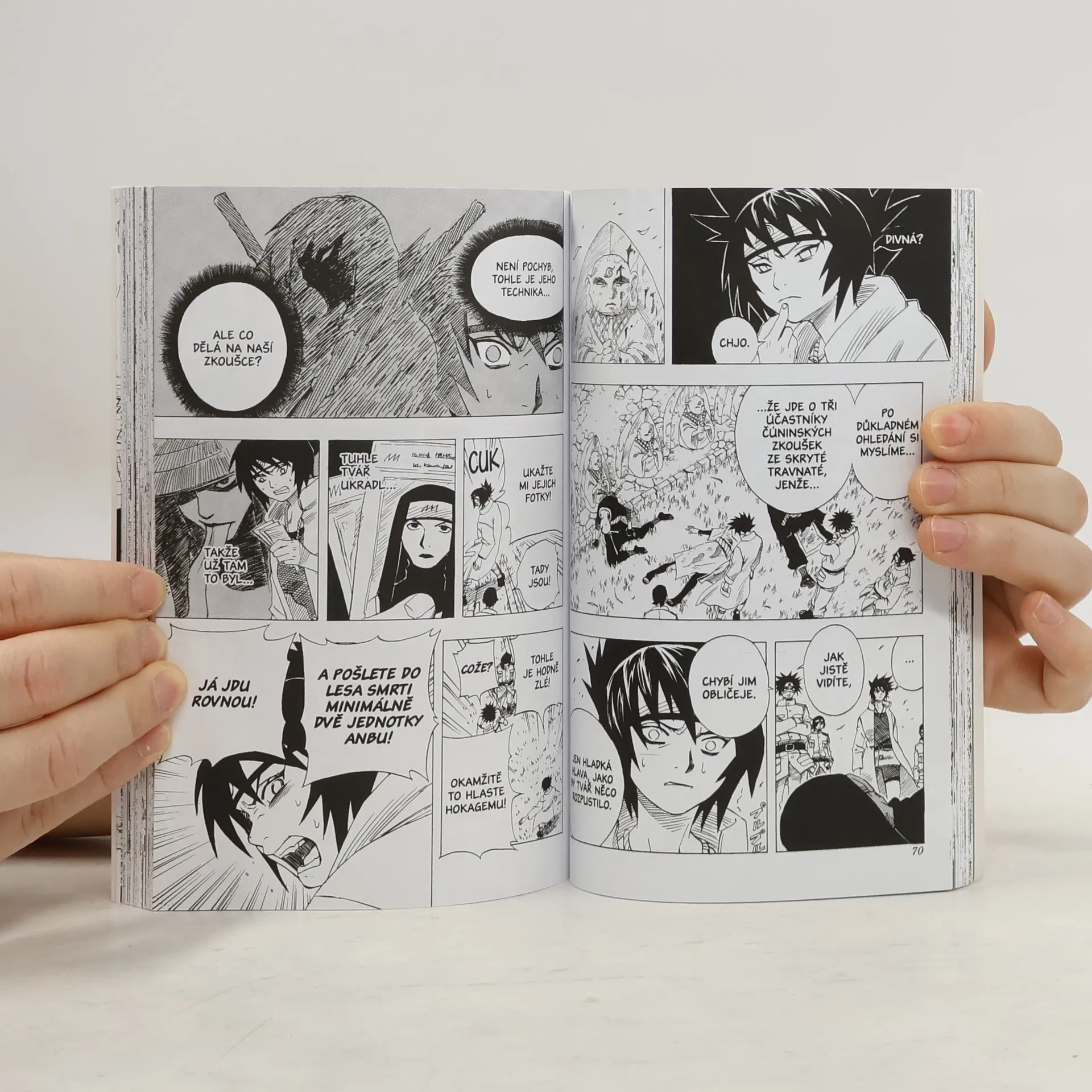 Naruto je nindža s talentem na maléry a touhou stát se největším bojovníkem svého klanu. První vítězství v boji bylo jen začátek. Teď musí složit nindžovské zkoušky. Písemné. Už to by možná stačilo na to, aby byl Naruto nadobro vyřazený ze hry, ale pro případ, že jimi projde, je tu druhá část testu: cesta všech adeptů hvozdem přátelsky nazvanýmLes smrti. Nastává nelítostný boj každý proti každému, boj, ve kterémjsou všechny triky dovolené a ve kterém bude vyřazena celá polovina adeptů. Do jaké půlky budou patřit Naruto, Sasuka a Sakura?