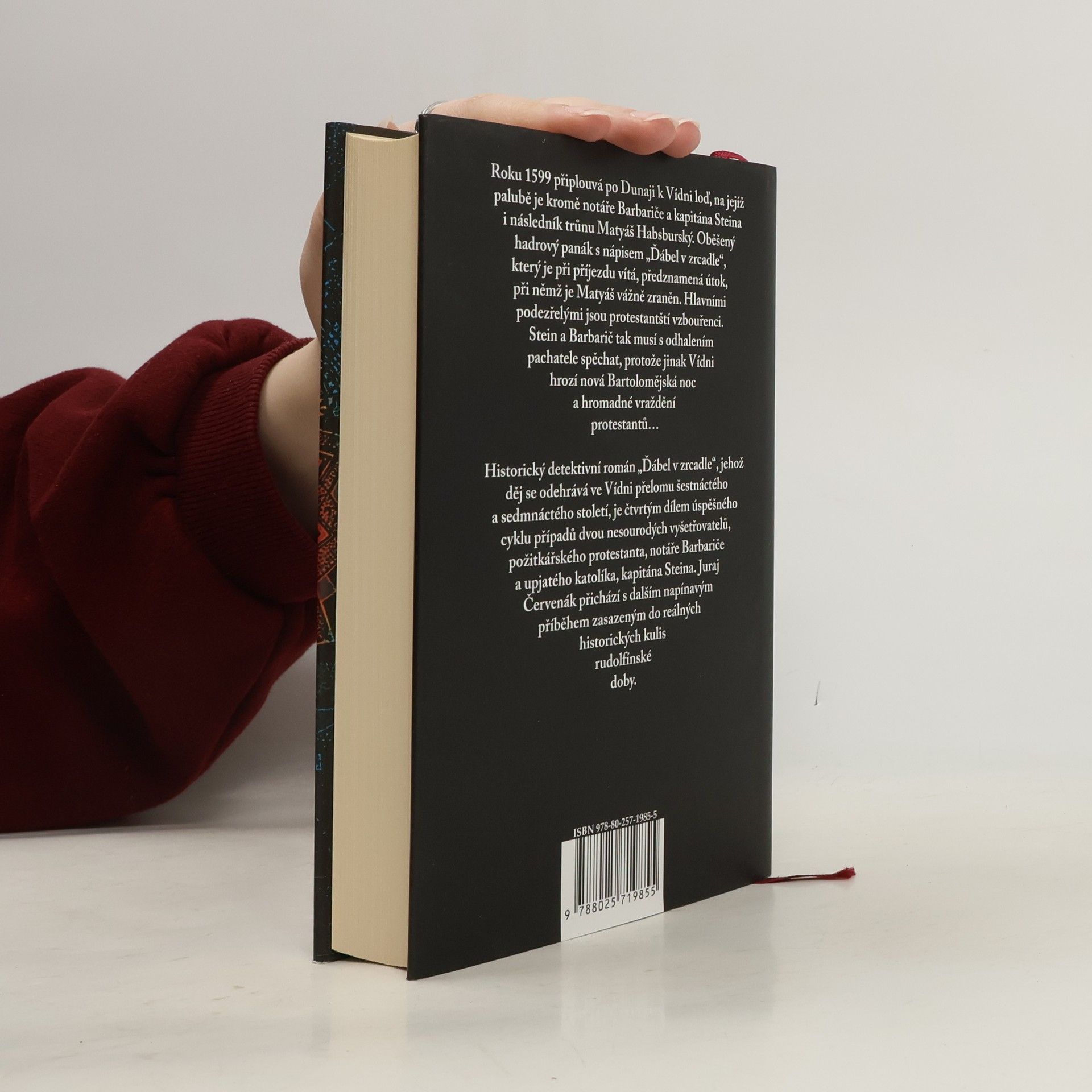 Ve čtvrtém románu cyklu historických detektivek Juraje Červenáka navštíví hrdinové Vídeň přelomu 16. a 17. století. Napínavý politický thriller ohromí dokonale vykreslenými dobovými reáliemi i spletitým příběhem plným akce, ale především sugestivním hledáním kořenů zločinu, při němž není příliš jasné, na které straně se nachází dobro a na které zlo. Nad někdejším císařským sídlem se stahují mračna. Špioni biskupa Khlesla zavětřili stopu protestantského spiknutí, kterého cílem je likvidace nejvyšších katolických hodnostářů. Obětí prvního útoku se stane sám následník trůnu, arcivévoda Matyáš Habsburský. Zatímco lékaři bojují o jeho život, Stein, Barbarič a Jaroš v ulicích Vídně a blízkém okolí pátrají po nelítostném vrahovi. Možná je to úkol nad jejich síly – za maskou „ďábla v zrcadle“ se údajně skrývá člověk, který se pohybuje v nejvyšších kruzích. Napětí mezi vídeňskými katolíky a protestanty se stupňuje a vkrádá se i mezi Steina a Barbariče. Nebudou nakonec stát proti sobě? Pozn.: V tiráži chybné vročení 2015