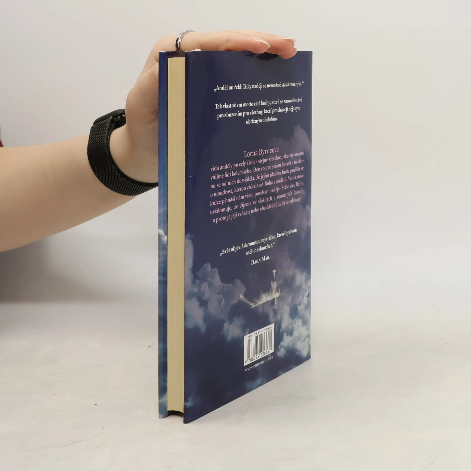 Irská autorka Lorna Byrne, která má od nejútlejšího dětství výjimečnou schopnost vidět anděly a komunikovat s nimi, je českým čtenářům dobře známá. Nesmírnou popularitu si získala jak její autobiografická kniha Andělé v mých vlasech, tak i volné pokračování pod názvem Schody do nebe. Ve svém nejnovějším třetím díle Andělské poselství naděje se autorka obrací přímo ke čtenářům s doporučeními, jak mohou oslovit anděly s prosbou o pomoc. Zdůrazňuje velkou sílu nejen modlitby a lásky, ale především naděje.