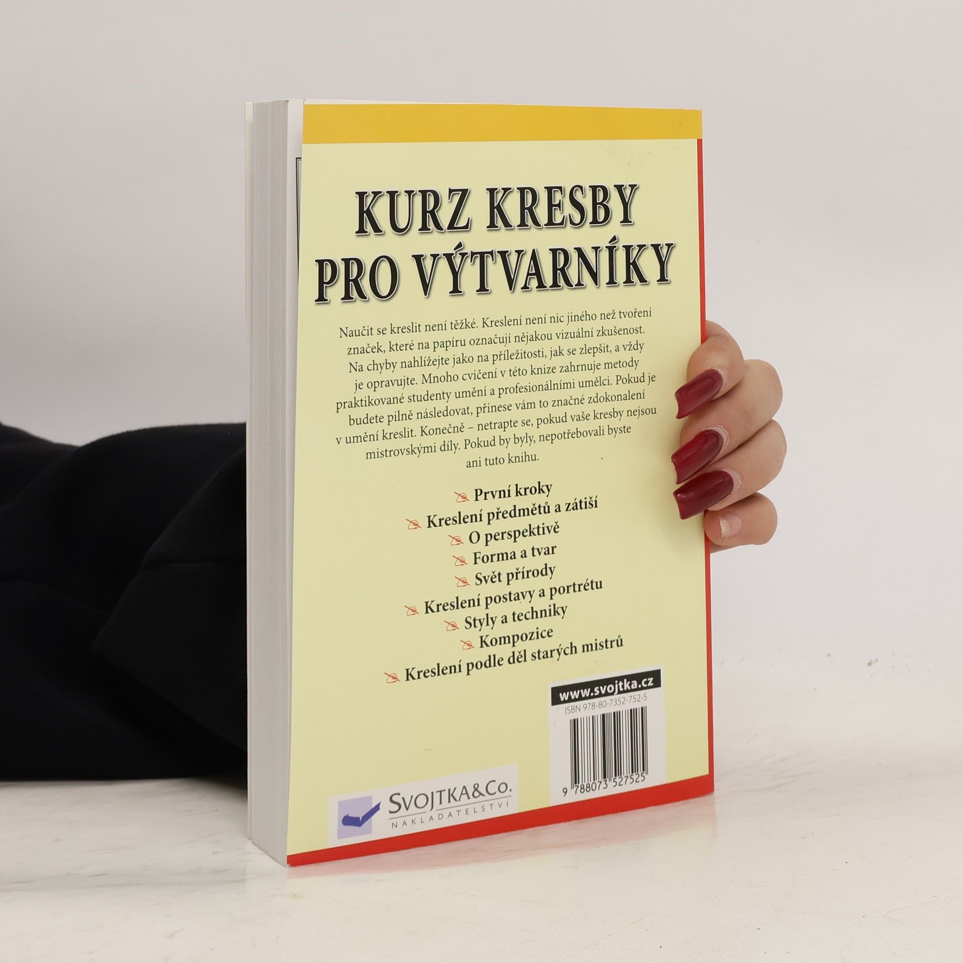 Naucit se kreslit není težké. Mnohá cvicení, která zde naleznete, zahrnují metody praktikované studeny umení a profesionálními umelci. V knize se seznámíte s prvními kroky kreslení predmetu a zátiší, dozvíte se neco o perspektive, kreslení postavy a portrétu i kompozici. Získáte informace o jednotlivých stylech a technikách vcetne rad, jak kreslit podle del starých mistru. Pokud budete rady pilne následovat, prinese vám to jiste znacné zdokonalení v umení kreslit. Konecne – netrapte se, pokud vaše kresby nejsou mistrovskými díly. Pokud by byly, nepotrebovali byste ani tuto knihu.