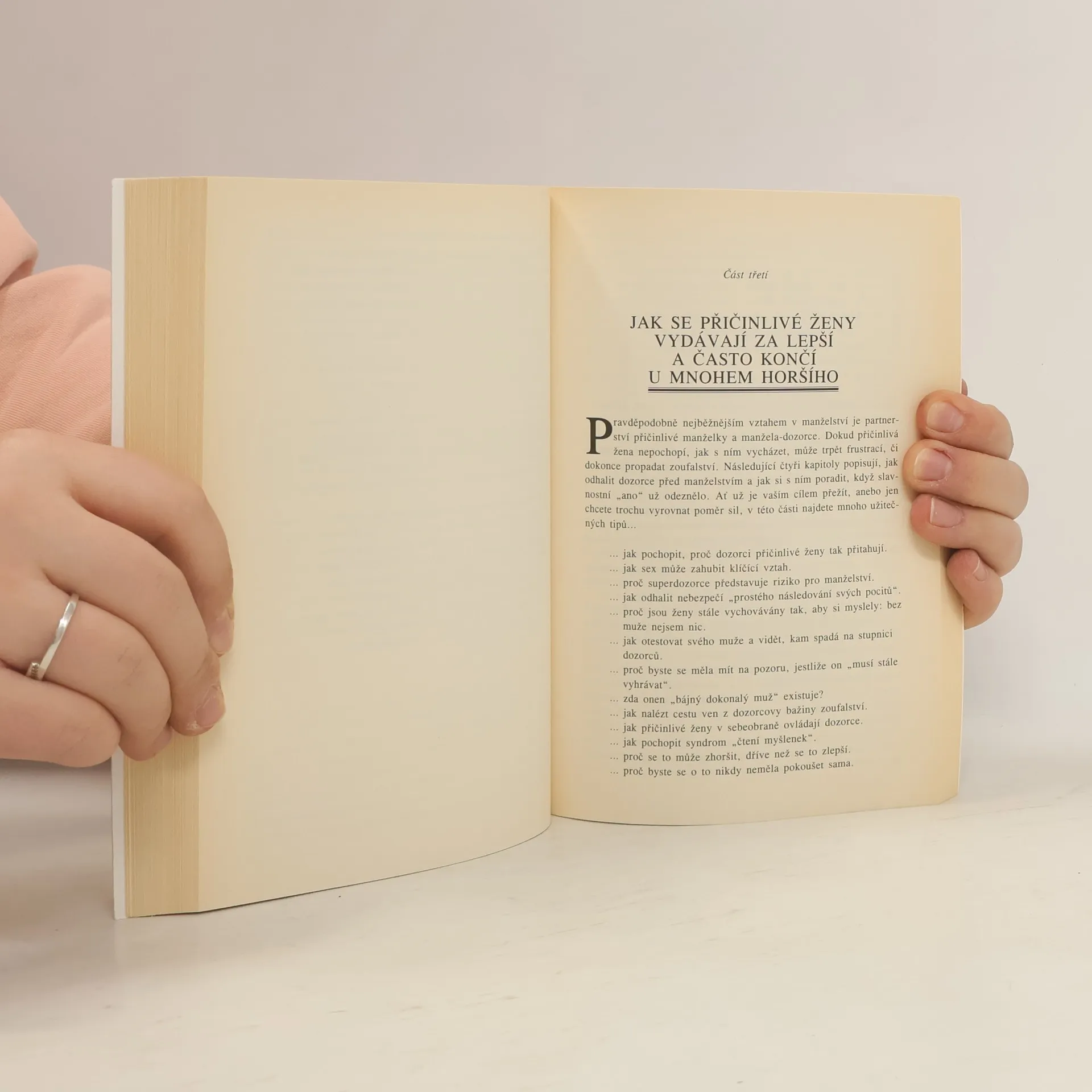 Naprosté vyčerpání, ztráta sebeúcty, falešné pocity viny. Tato kniha je pro ženu, která je unavená z toho, jak se štve, jak se snaží, aby všechno fungovalo, a která má pocit, že všechny její vztahy závisí jen na ní. Je určena všem ženám, které touží po větším respektu u benzinové pumpy, u pokladny v samoobsluze, u jídelního stolu a především v ložnici...