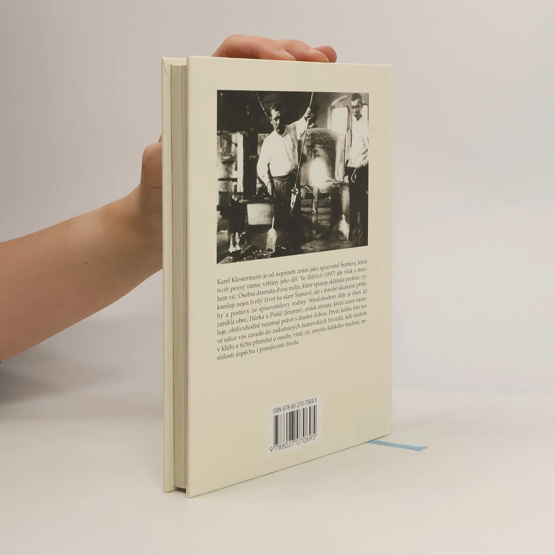 Karel Klostermann je od nepaměti znám jako spisovatel Šumavy, která tvoří pevný rámec většiny jeho děl. Ve Sklářích (1897) jde však o mnohem víc. Osobní dramata dvou rodin, které spojuje sklářská profese, vykreslují nejen tvrdý život na staré Šumavě, ale i mnohé skutečné příběhy a postavy ze spisovatelovy rodiny. Středobodem děje je dnes již zaniklá obec, Hůrka u Prášil (Jezerné), avšak témata, která autor nastoluje, obdivuhodně rezonují právě s dnešní dobou. Tato kniha vás zavede do zadumaných šumavských hvozdů, kde můžete v klidu a tichu přemítat o osudu, vině, cti, smyslu lidského snažení, nestálosti úspěchu i pomíjivosti života.