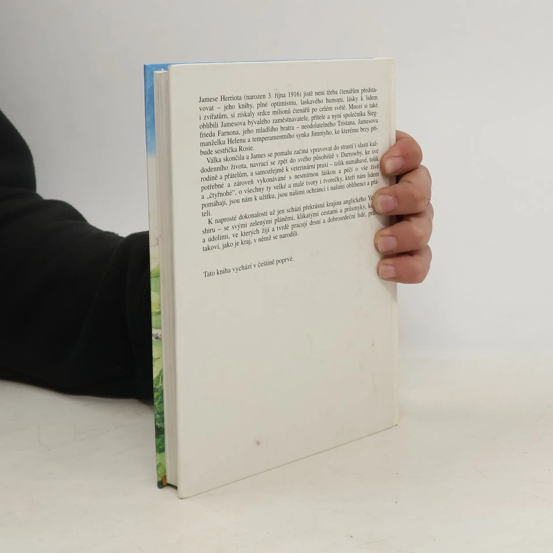 Jamese Herriota jistě není třeba čtenářům představovat - jeho knihy plné optimismu, laskavého humoru a lásky k lidem i zvířatům si získaly srdce miliónů čtenářů po celém světě. Mnozí si také oblíbili Jamesova bývalého zaměstnavatele, přítele a nyní společníka Siegfrieda Farnona, jeho mladšího bratra - neodolatelného Tristana, Jamesovu manželku Helenu a temperamentního synka Jimmyho, ke kterému brzy přibude sestřička Rosie. Druhá světová válka skončila a James se pomalu začíná vpravovat do strastí i slastí každodenního života, navrací se zpět do svého působiště v Darrowby, ke své rodině a přátelům, a samozřejmě k veterinární praxi - tolik namáhavé, tolik potřebné a zároveň vykonávané s nesmírnou láskou a péčí o vše živé a "čtyřnohé", o všechny ty velké a malé tvory i tvorečky, kteří nám lidem pomáhají, jsou nám k užitku, jsou našimi ochránci i našimi oblíbenci a přáteli. K naprosté dokonalosti už schází jen překrásná krajina anglického Yorkshiru - se svými zelenými pláněmi, klikatými cestami a průsmyky, kopci a údolími, ve kterých žijí a tvrdě pracují drsní a dobrosrdeční lidé, právě takoví, jako je kraj, v němž se narodili. Vydavatel: Ametyst, Praha.... celý text