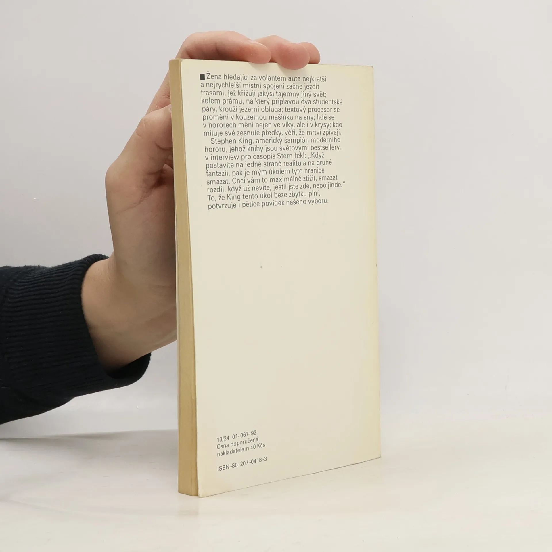 Žena hledající za volantem auta nejkratší a nejrychlejší místní spojení začne jezdit trasami, jež křižují jakýsi tajemný jiný svět; kolem prámu, na který připlavou dva studentské páry, krouží jezerní obluda; textový procesor se promění v kouzelnou mašinku na sny; lidé se v hororech mění nejen na vlky, ale i v krysy; kdo miluje své zesnulé předky, věří, že mrtví zpívají. Stephen King, americký šampión moderního hororu, jehož knihy jsou světovými bestsellery, v interview pro časopis Stern řekl: "Když postavíte na jedné straně realitu a na druhé fantazii, pak je mým úkolem tyto hranice smazat. Chci vám to maximálně ztížit, smazat rozdíl, když už nevíte, jestli jste zde, nebo jinde." To, že King tento úkol beze zbytku plní, potvrzuje i pětice povídek našeho výboru. Povídky: - Zkratka paní Toddové (Mrs. Todd's Shortcut) - Prám (The Raft) - Textový procesor bohů (The Word Processor of the Gods) - Nona (Nona) - Úžina (The Reach) -- zdroj: www.legie.info --