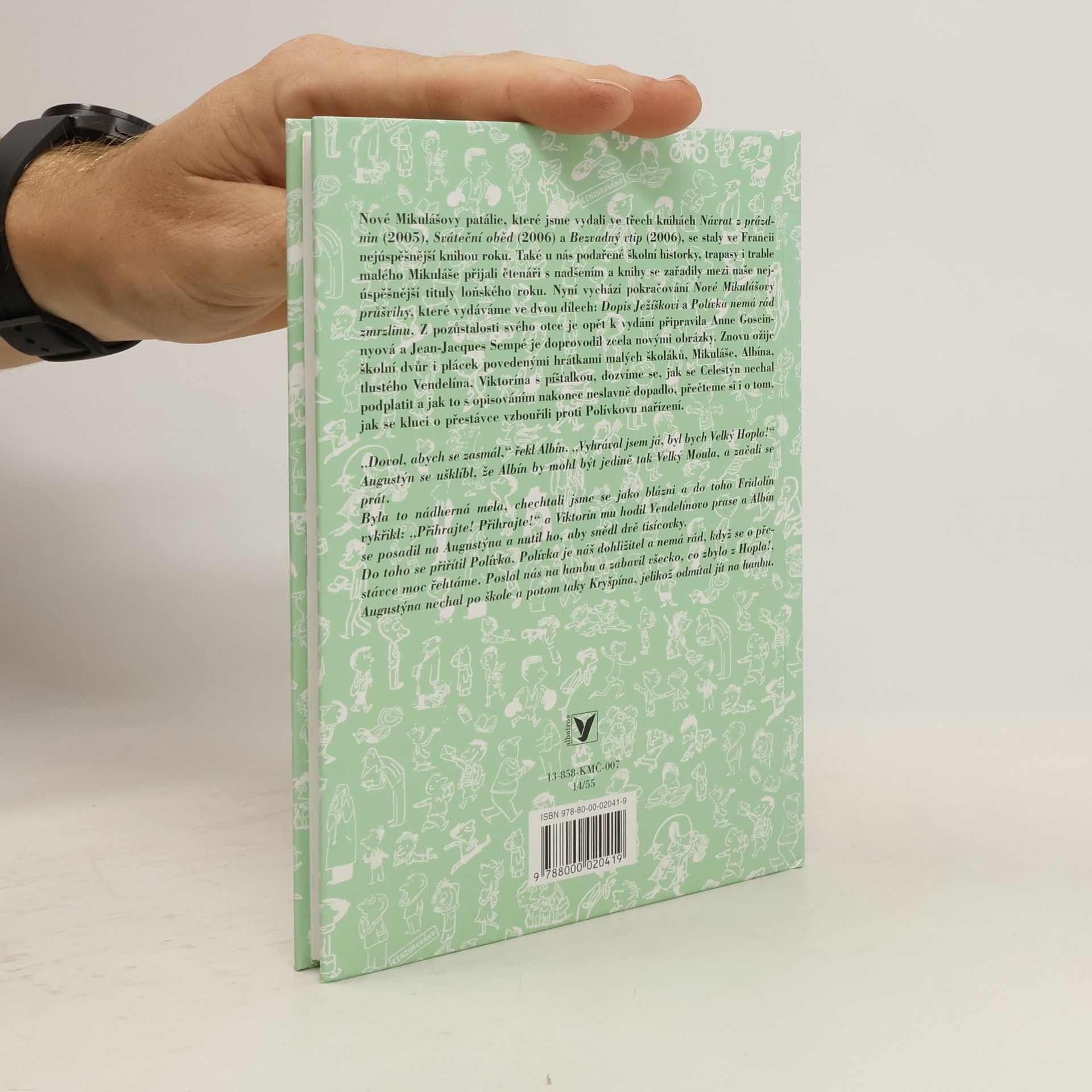 Znovu ožije školní dvůr, plácek i park povedenými hrátkami malých školáků, Mikuláše, Albína, tlustého Vendelína, Viktorína s píšťalkou, mazánka Celestýna a dalších. Čtenáři se mohou těšit na nové příběhy, v nichž se dozvědí, jak se Celestýn nechal podplatit a jak to s opisováním nakonec neslavně dopadlo, jak se kluci o přestávce vzbouřili proti Polívkovu nařízení, doprovodí Mikuláše k holiči i do bazénu. Díky alchymii, která mísí dětskou mluvu vynalezenou Goscinnym s poetickou, žertovnou a uvolněnou kresbou Sempého, příběhy, ať už směšně dojemné nebo žertovné, nám připomenou dětství.