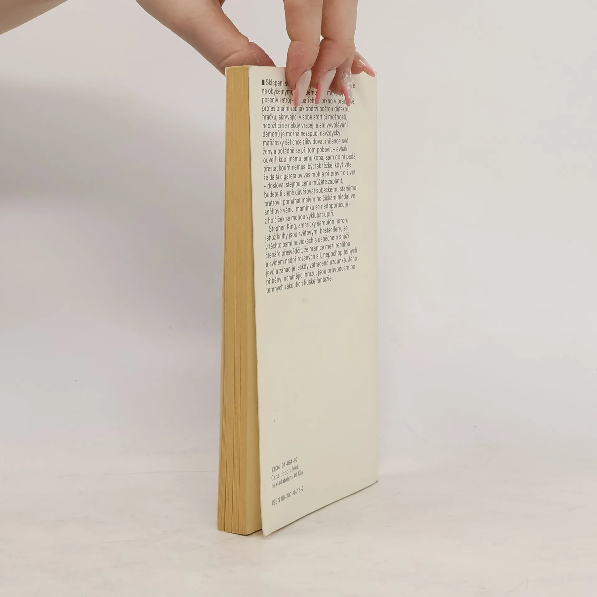 Sklepení staré továrny se hemží krysami, ale ne obyčejnými; zlým démonem může být posedlý i stroj – třeba žehlící prkno v prádelně; profesionální zabiják obdrží poštou dětskou hračku, skrývající v sobě smrtící možnosti; nebožtíci se někdy vracejí a ani vyvolávání démonů je možná nezapudí navždycky; mafiánský šéf chce zlikvidovat milence své ženy a pořádně se při tom pobavit – avšak ouvej!, kdo jinému jámu kopá, sám do ní padá; přestat kouřit nemusí být tak těžké, když víte, že další cigareta by vás mohla připravit o život – doslova; stejnou cenu můžete zaplatit, budete-li slepě důvěřovat sobeckému staršímu bratrovi; pomáhat malým holčičkám hledat ve sněhové vánici maminku se nedoporučuje. Stephen King, americký šampión moderního hororu, jehož knihy jsou světovými bestsellery, se v těchto osmi povídkách s úspěchem snaží čtenáře přesvědčit, že hranice mezi realitou a světem nadpřirozených sil, nepochopitelných jevů a záhad je leckdy zatraceně uzounká. Jeho příběhy, nahánějící hrůzu, jsou průvodce po temných zákoutí lidské fantazie. Přeložil Pavel Medek.