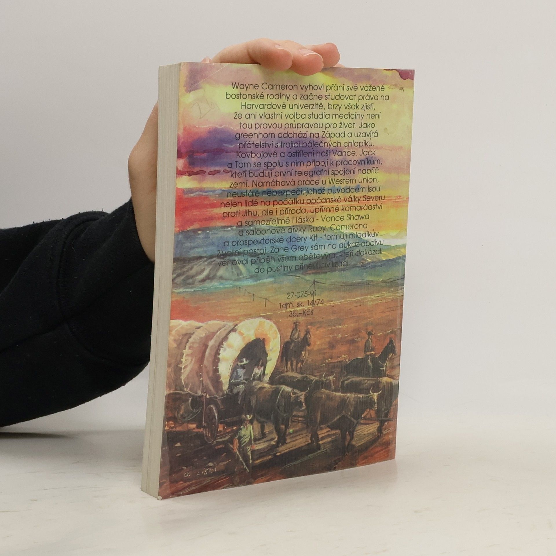 Wayne Cameron vyhoví přání své vážené bostonské rodiny a začne studovat práva na Harvardské univerzitě, brzy však zjistí, že ani vlastní volba studia medicíny není tou pravou průpravou pro život. Jako greenhorn odchází na Západ a uzavírá přátelství s trojicí báječných chlapíků. Kovbojové a ostřílení hoši Vance, Jack a Tom se spolu s ním připojí k pracovníkům, kteří budují první telegrafní spojení napříč zemí. Namáhavá práce u Western Union, neustálé nebezpečí na počátku občanské války Severu proti Jihu, ale i příroda, upřímné kamarádství a samozřejmě i láska - Vance Shawa a saloonové dívky Ruby, Camerona a prospektorské dcery Kit - formují mladíkův životní postoj. Zane Grey sám na důkaz obdivu věnoval příběh všem obětavým, kteří dokázali do pustiny přinést civilizaci.... celý text