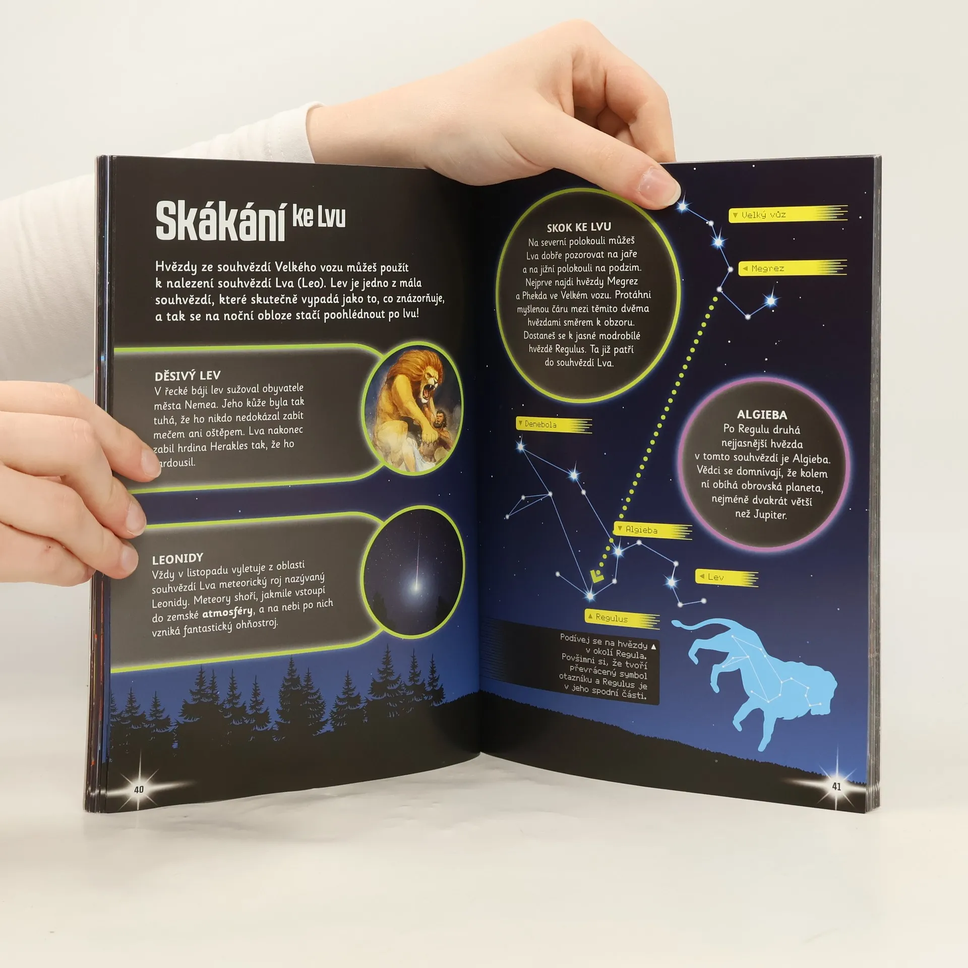 Vydej se na cestu noční oblohou a seznam se s hvězdami a souhvězdími. Podívej se na Měsíc, k Slunci, k planetám a ještě mnohem dál díky úžasným fotografiím, fascinujícím údajům a ,,skákání'' po hvězdných mapách. *co je severní polární záře? *proč vidíme jen jednu stranu Měsíce? *jak vzniká kometa a kdy je možné nějakou pozorovat? Odpovědi na tyto otázky a ještě mnoho dalších zajímavostí se dozvíš , když se necháš vést tímto zábavným průvodcem. TAK NA CO ČEKÁŠ ? Vzhůru na průzkum vesmíru !