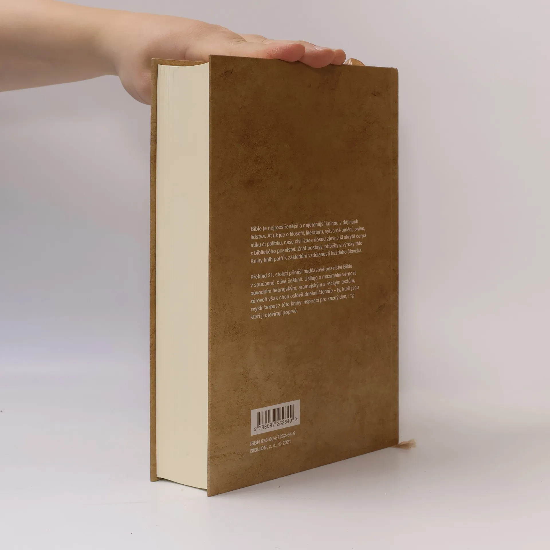 Bible21 ve velikosti „XL“ je vytištěna mimořádně velkými písmeny. Je tak ideální nejen pro ty, kdo mají potíže se čtením drobnějšího textu, ale i jako rodinná Bible, svatební dar, Bible na kazatelnu či pro veřejné čtení. Zbrusu nové 8. vydání Bible 21 obsahuje zahrnuje řadu úprav tohoto populárního překladu, tak aby český text byl ještě přesnější a ještě srozumitelnější než dřív. Bible je nejrozšířenější a nejčtenější knihou v dějinách lidstva. Ať už jde o filosofii, literaturu, výtvarné umění, právo, etiku či politiku, naše civilizace dosud zjevně či skrytě čerpá z biblického poselství. Znát postavy, příběhy a výroky této Knihy knih patří k základům vzdělanosti každého člověka. Překlad 21. století přináší nadčasové poselství Bible v současné, čtivé češtině. Usiluje o maximální věrnost původním hebrejským, aramejským a řeckým textům, zároveň však chce oslovit dnešní čtenáře, ať už jsou zvyklí čerpat z této knihy inspiraci pro každý den, anebo ji otevírají poprvé.
