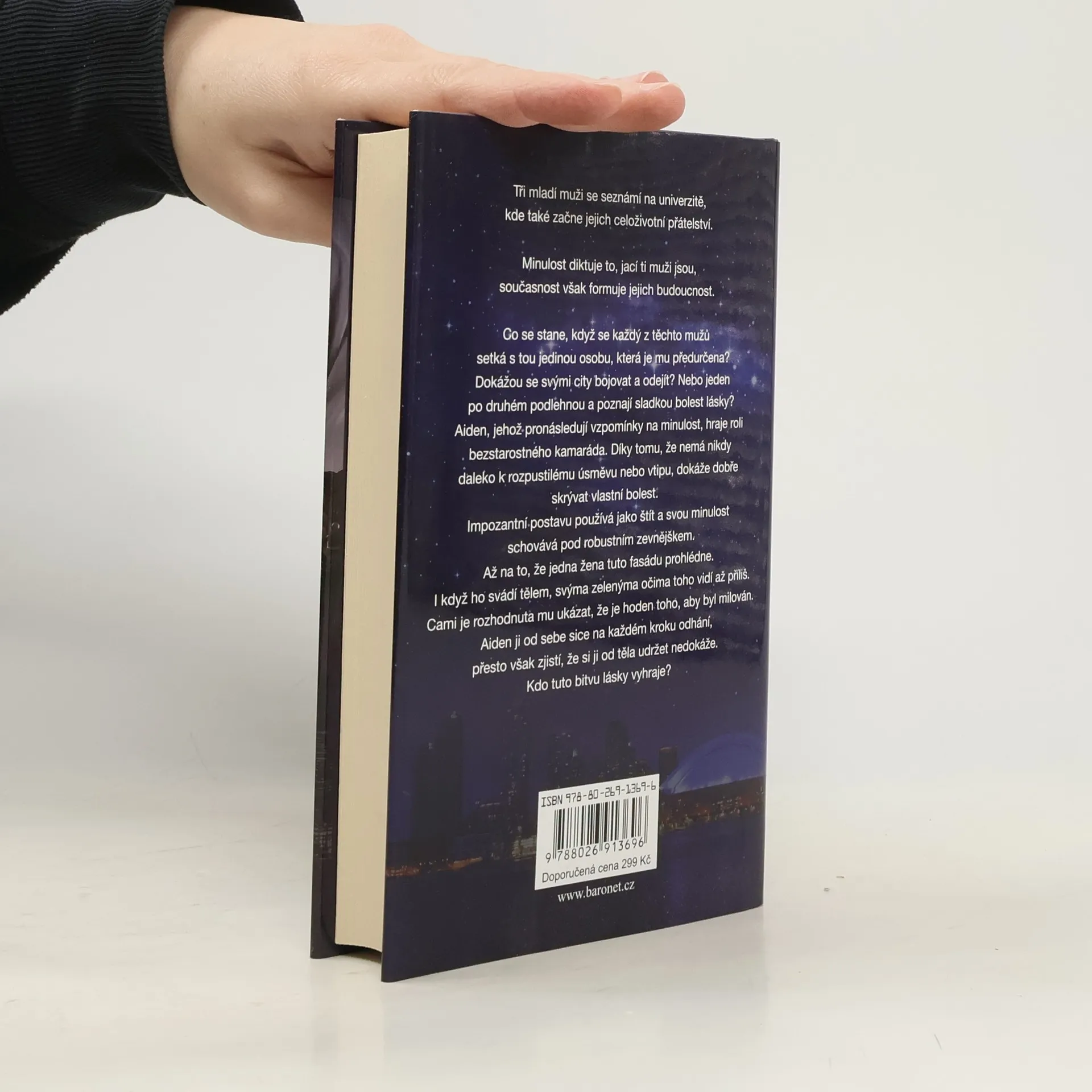 Tři mladí muži se seznámí na univerzitě, kde také začne jejich celoživotní přátelství. Minulost diktuje to, jací ti muži jsou, současnost však formuje jejich budoucnost. Co se stane, když se každý z těchto mužů setká s tou jedinou osobu, která je mu předurčena? Dokážou se svými city bojovat a odejít? Nebo jeden po druhém podlehnou a poznají sladkou bolest lásky? Aiden, jehož pronásledují vzpomínky na minulost, hraje roli bezstarostného kamaráda. Díky tomu, že nemá nikdy daleko k rozpustilému úsměvu nebo vtipu, dokáže dobře skrývat vlastní bolest. Impozantní postavu používá jako štít a svou minulost skrývá pod robustním zevnějškem. Až na to, že jedna žena tuto fasádu prohlédne. I když jej svádí tělem, svýma zelenýma očima toho vidí až příliš. I když po ní jeho srdce touží. Cami je rozhodnuta mu ukázat, že je hoden toho, aby byl milován. Aiden ji od sebe sice na každém kroku odhání, přesto však zjistí, že si ji od těla udržet nedokáže. Kdo tuto bitvu lásky vyhraje?