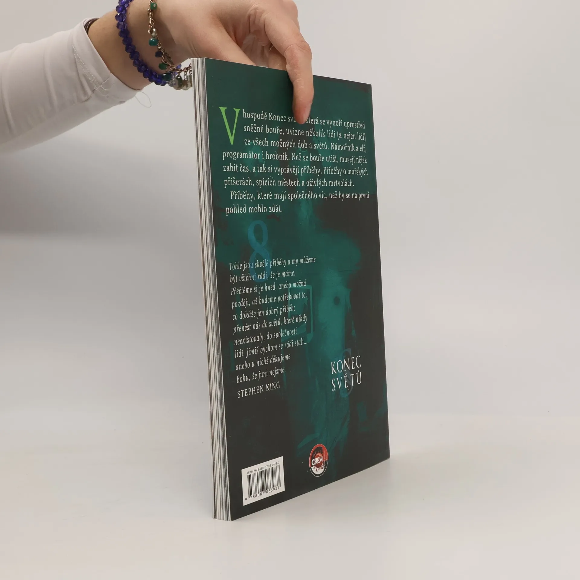 V hospodě Konec světů, která se vynoří uprostřed sněžné bouře uvízlo několik lidí (a nejen lidí), ze všech možných dob a světů. Námořník i elf, programátor i hrobník. Než se bouře utiší, musí nějak zabít čas a tak si vyprávějí příběhy. Příběhy o mořských příšerách, spících městech a oživlých mrtvolách. Příběhy, které mají spolu společného víc, než by se na první pohled zdálo.