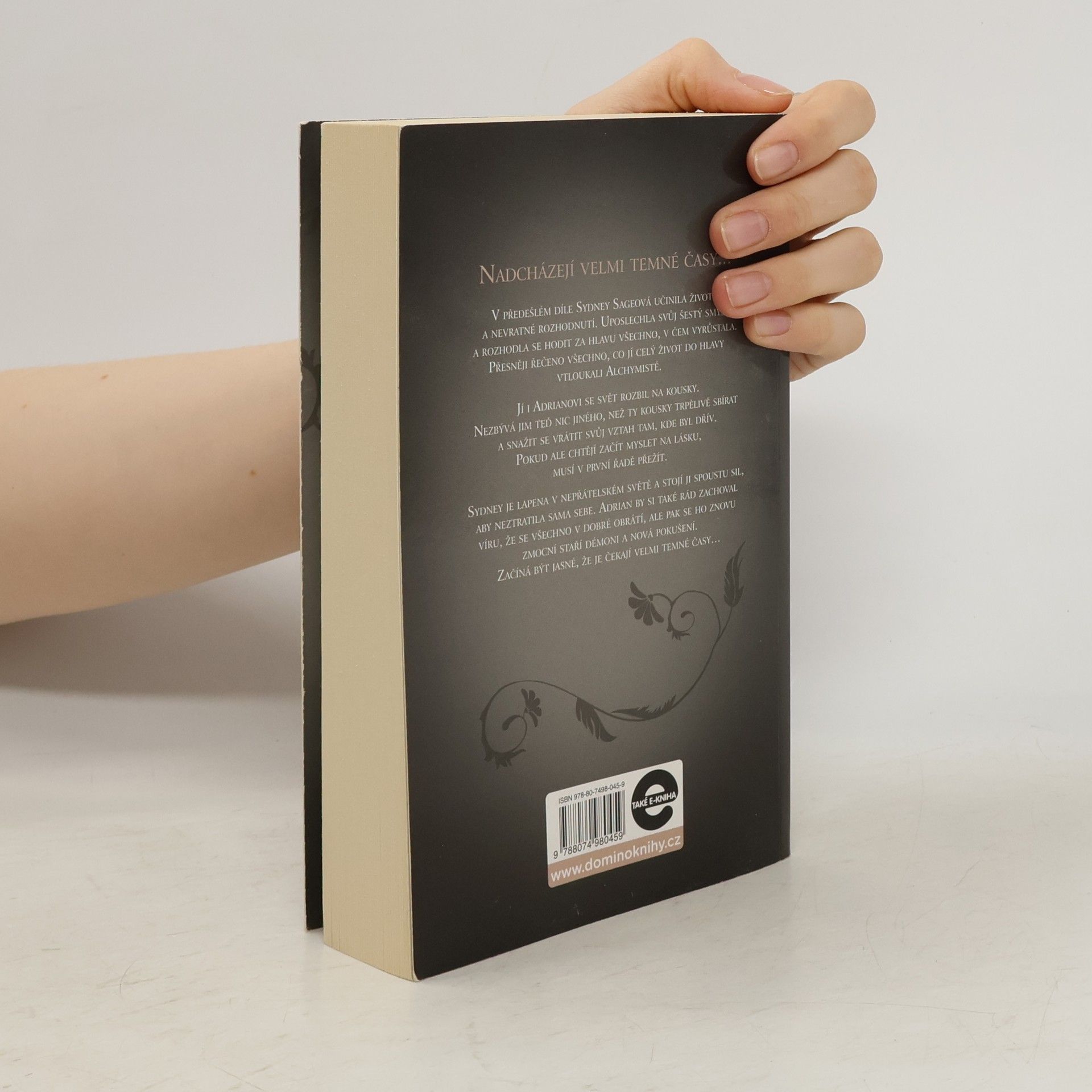 Nadcházejí velmi temné časy... V předešlém díle Sydney Sageová učinila životní – a nevratné - rozhodnutí. Uposlechla svůj šestý smysl a rozhodla se hodit za hlavu všechno, v čem vyrůstala. Přesněji řečeno všechno, co jí do hlavy vtloukali Alchymisté. Jí i Adrianovi se celý svět rozbil na kousky. Nezbývá jim teď nic jiného, než ty kousky trpělivě sbírat a snažit se vrátit svůj vztah tam, kde byl dřív. Pokud ale chtějí začít myslet na lásku, musí v první řadě přežít. Sydney je lapena v nepřátelském světě a stojí ji spoustu sil, aby neztratila sama sebe. Adrian by si také rád zachoval víru, že se všechno v dobré obrátí, ale pak se ho znovu zmocní staří démoni a nová pokušení. Začíná být jasné, že je čekají velmi temné časy...