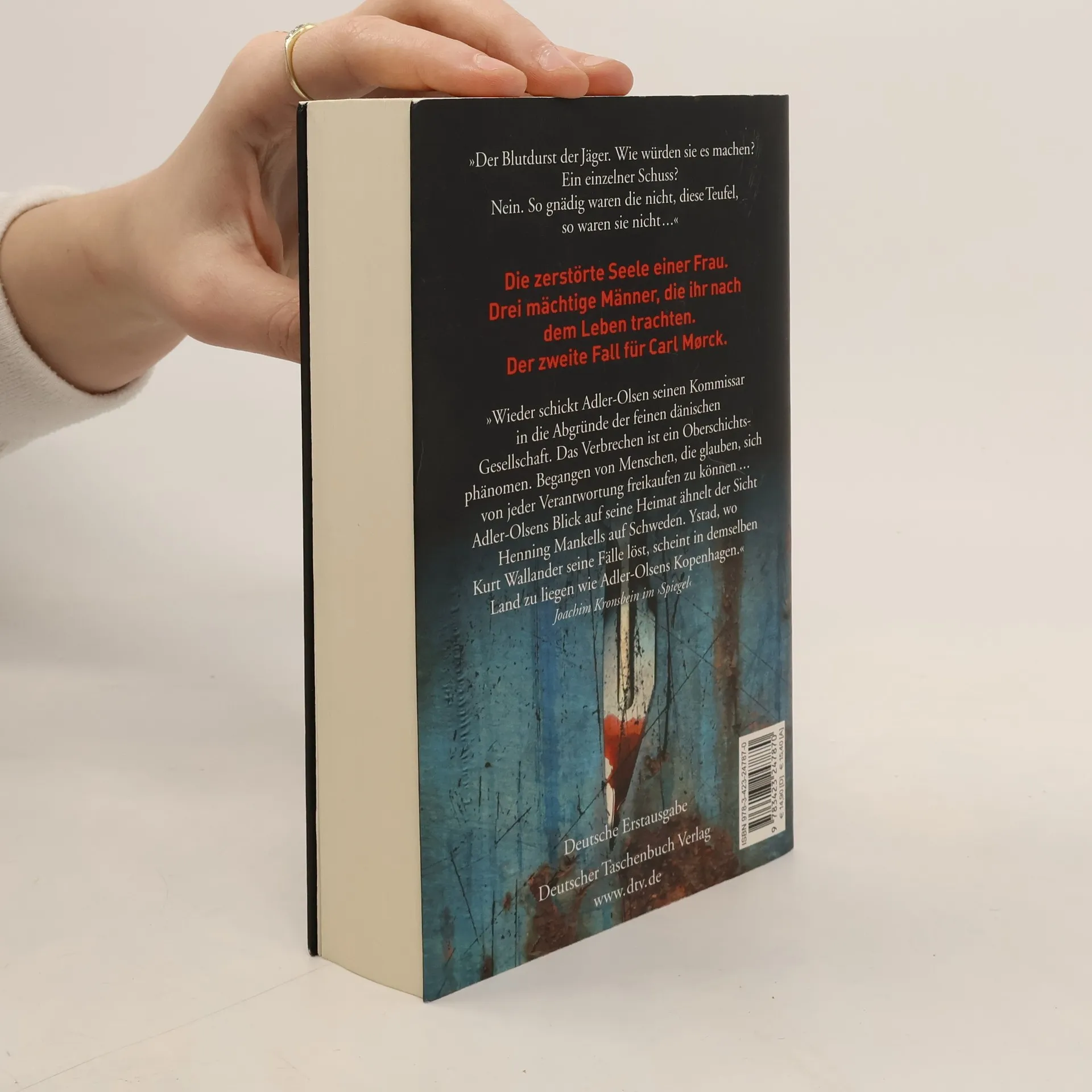 Nach ›Erbarmen‹ jetzt der zweite Fall für das Sonderdezernat Q. »Der Blutdurst der Jäger. Wie würden sie es machen? Ein einzelner Schuss? Nein. So gnädig waren die nicht, diese Teufel, so waren sie nicht ...«Ein Leichenfund in einem Sommerhaus in Rørvig. Zwei Geschwister sind brutal ermordet worden. Der Verdacht fällt auf eine Gruppe junger Schüler eines exklusiven Privatinternats, die für ihre Gewaltorgien bekannt sind. Einer von ihnen gesteht. Zwanzig Jahre später. Nachdem Carl Mørck aus dem Urlaub zurückkommt, stößt ihn sein Assistent Assad mit der Nase auf die verstaubte Rørvig-Akte. Doch von oberster Stelle werden ihnen weitere Ermittlungen verboten. Carl und Assad ist klar, dass hier etwas zum Himmel stinkt: Die Spuren führen hinauf bis in die höchsten Kreise der Gesellschaft, in die Welt der Aktienhändler, Reeder und Schönheitschirurgen – und sie führen ganz weit nach unten, in die Abgründe der Gesellschaft, zu einer Obdachlosen: äußerlich hart wie Granit, doch mit einer blutenden Seele ...