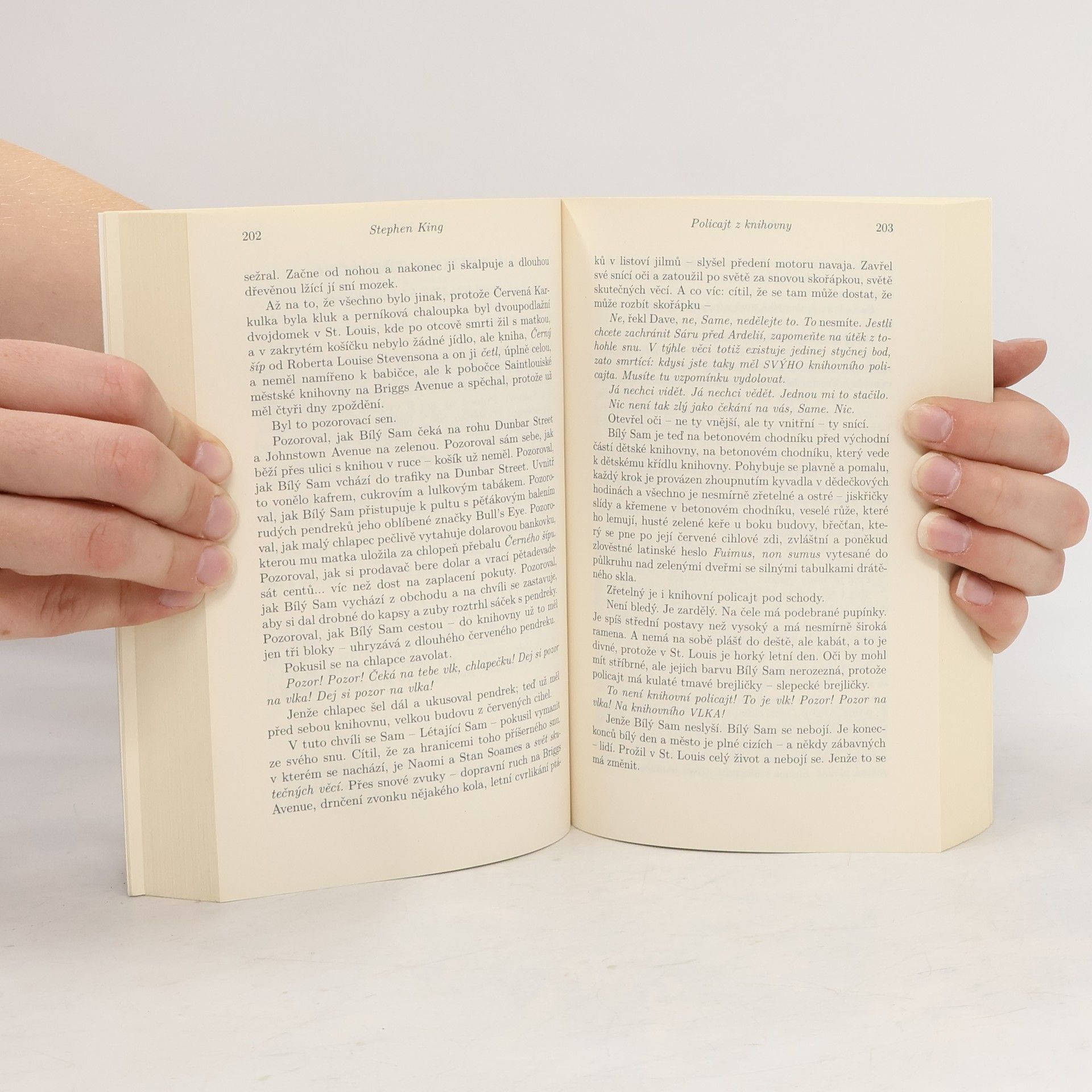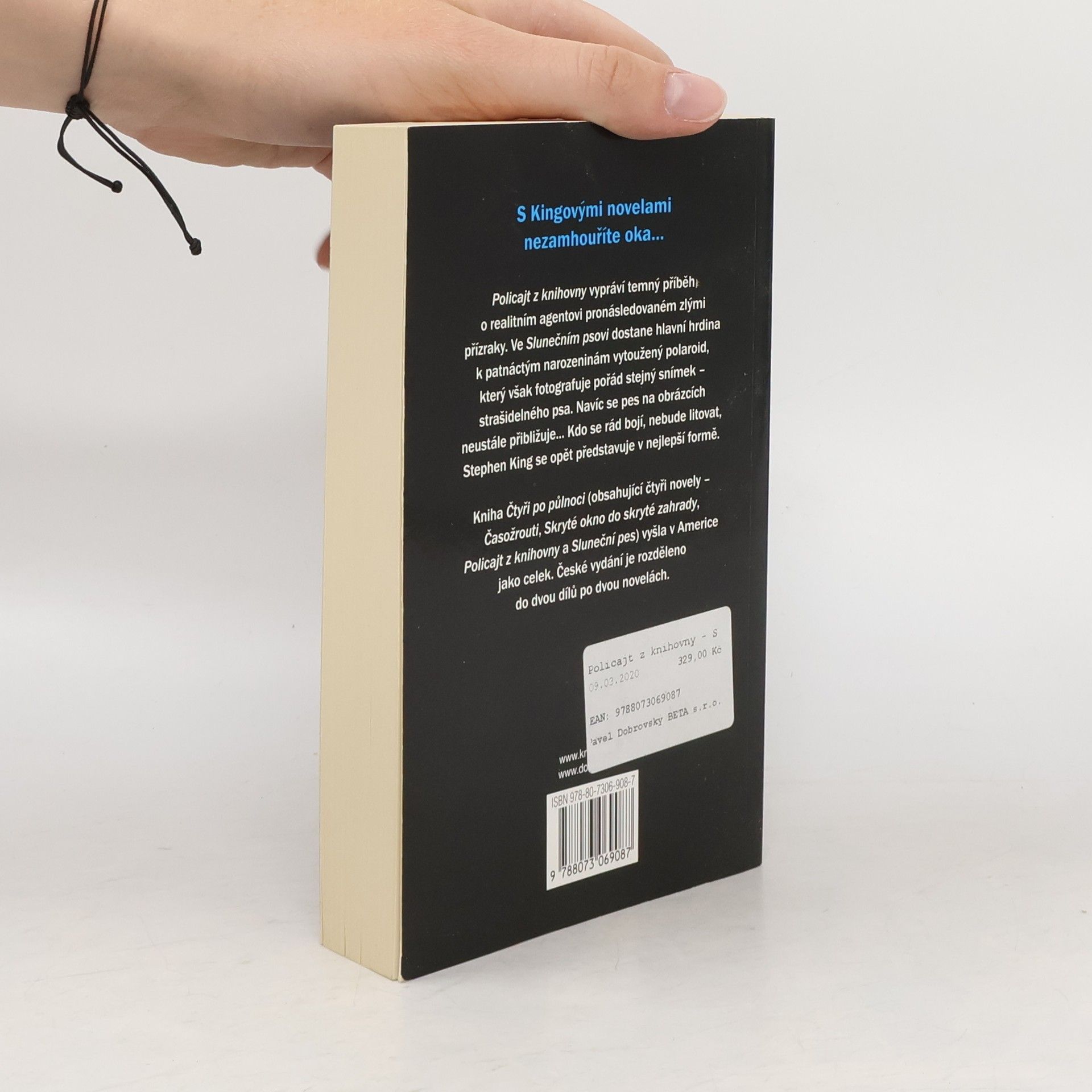 Tento svazek je druhou částí knihy Čtyři po půlnoci, která u nás vyšla rozděleně. Obsahuje novely Policajt z knihovny a Sluneční pes. Policajt z knihovny je příběhem Sama Peeblese, realitního a pojišťovacího agenta, který si kvůli projevu v rotariánském klubu vypůjčí k knihovny v Junction City dvě knihy. Ale knihovnice je zlý přízrak a když Sam knihy včas nevrátí, pošle na něho knihovního policajta... Závěrečný souboj dobra se zlem je přesně ve stylu Stephena Kinga v té nejlepší formě. Kevin Delevan, hlavní hrdina novely Sluneční pes, dostane k patnáctým narozeninám vytoužený dárek - polaroid Sun 660. Jaké je ale jeho překvapení, když polaroid fotografuje stále stejný snímek - obrázek ošklivého psa. Překvapení se ale brzy začne měnit v děs, když s ukáže, že snímky nejsou až tak úplně stejné. Pes se totiž neustále přibližuje... méně textu