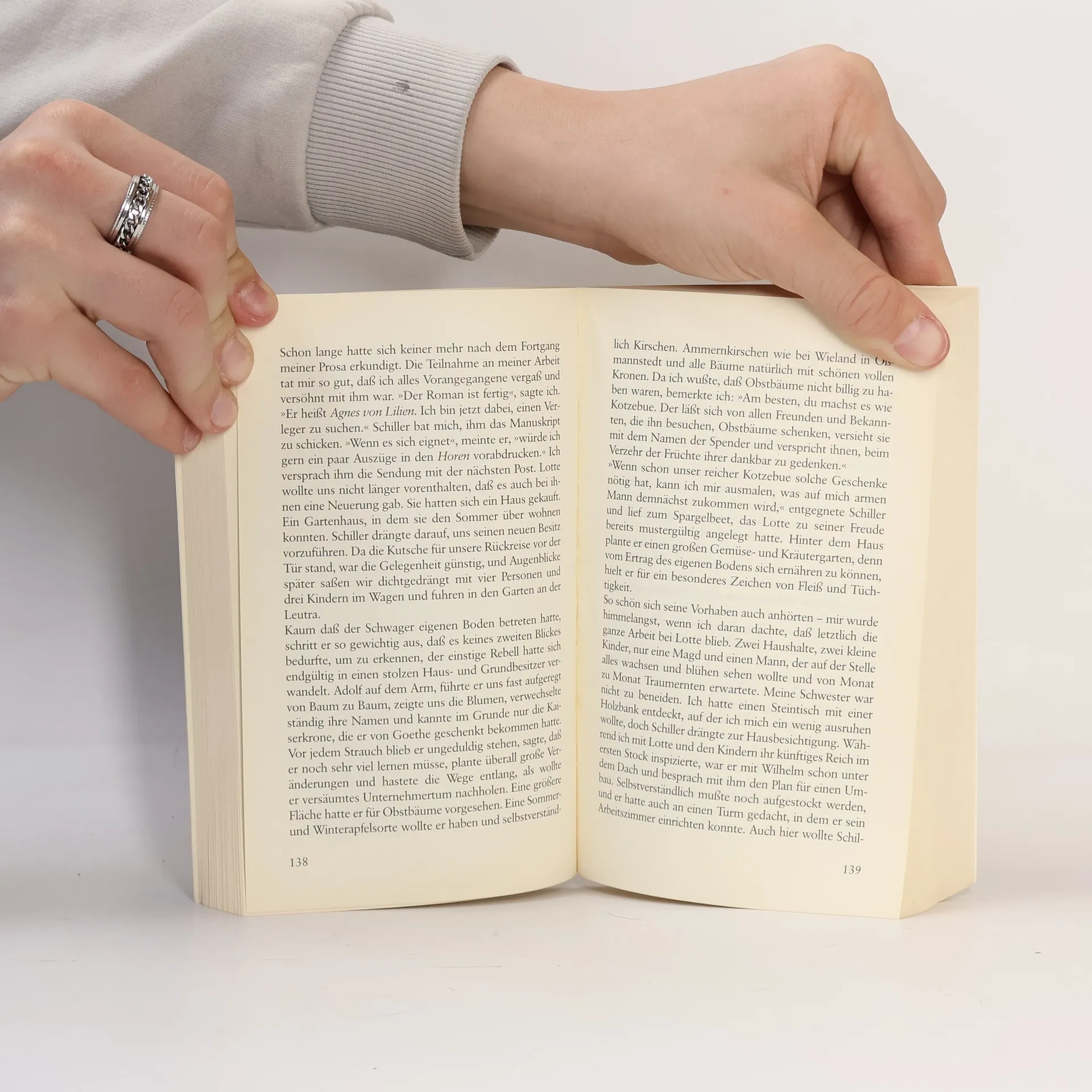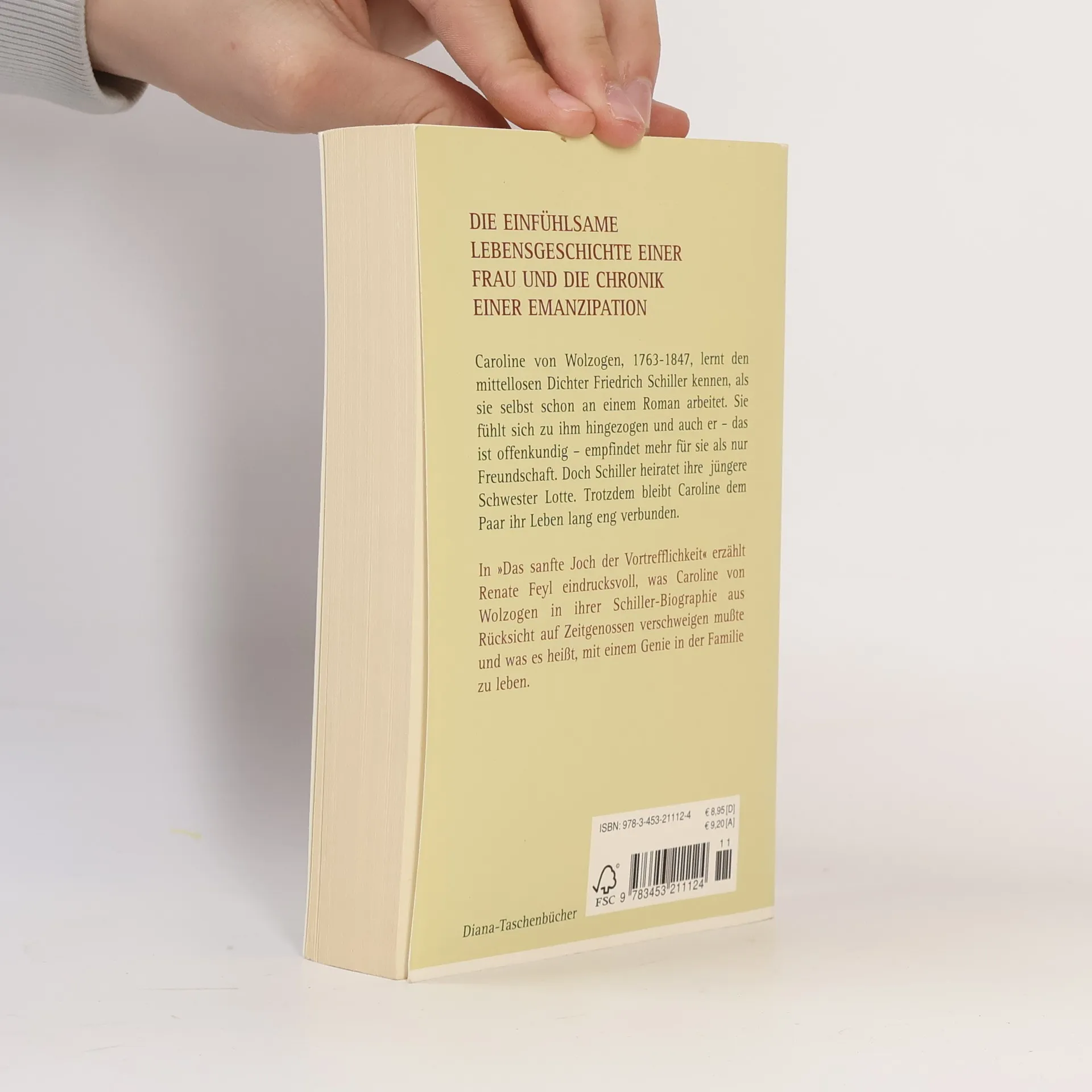 Caroline von Wolzogen, geboren 1763, ist Autorin und Mitglied des Weimarer Intellektuellenkreises. Als sie Friedrich Schiller kennenlernt, ist dieser ein mittelloser Dichter. Sie finden ebenbürtige Gesprächspartner ineinander und kommen sich näher. Trotzdem heiratet Schiller Carolines jüngere Schwester Lotte. Nach seinem frühen Tod schreibt Caroline eine Biografie über ihren Schwager. Was sie in ihrer Biografie aber mit Rücksicht auf Zeitgenossen verschweigen musste, wird in diesem Buch erzählt.