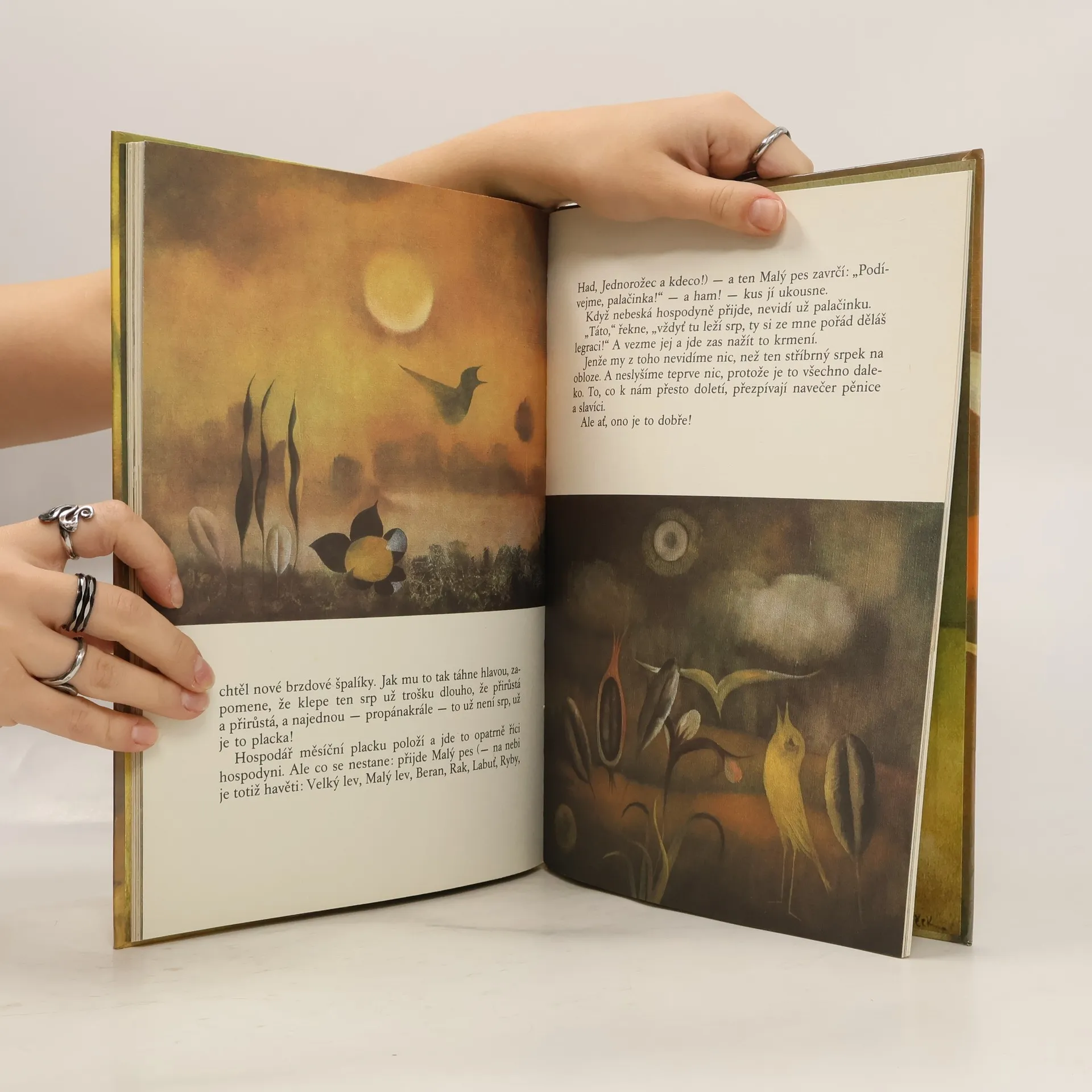 Povídky k obrazům Oty Janečka napsal František Nepil. Pohádky: Pimprle, pan malíř a Múza, Na čem se to houpávali malí obříci, Největší práci dá skřivánkovi žito, Dvanáctý havraní sněm, Než začne ptáček hnízdit, Setkání, Hřbitov se jen zdá smutný, "Kdo z vás ví něco o ježcích?", Jak se dělá nebeská palačinka, O pánovi z lupínku, Jak vypadají hvězdy, Hrál pán na flétnu, Proč se zlomí strom, Jak se pěstují tulipány, Jinovatka. 1. vydání.