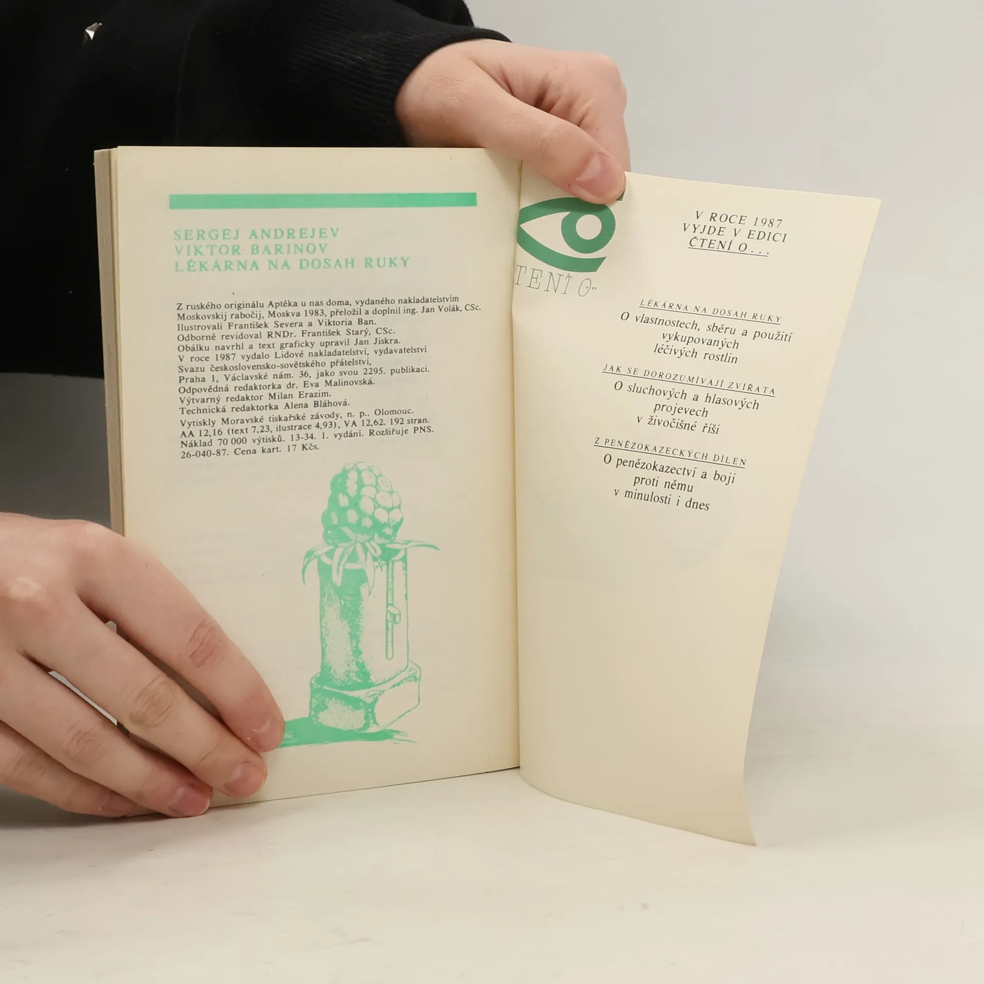 Kniha obsahuje: základní účinné látky léčivých rostlin a jejich vlastnosti; sběr a sušení léčivých rostlin; skladování, balení a dávkování drog; vykupované léčivé rostliny; jedovaté léčivé rostliny; léčivé rostliny pro vůni a krásu. 26-040-87