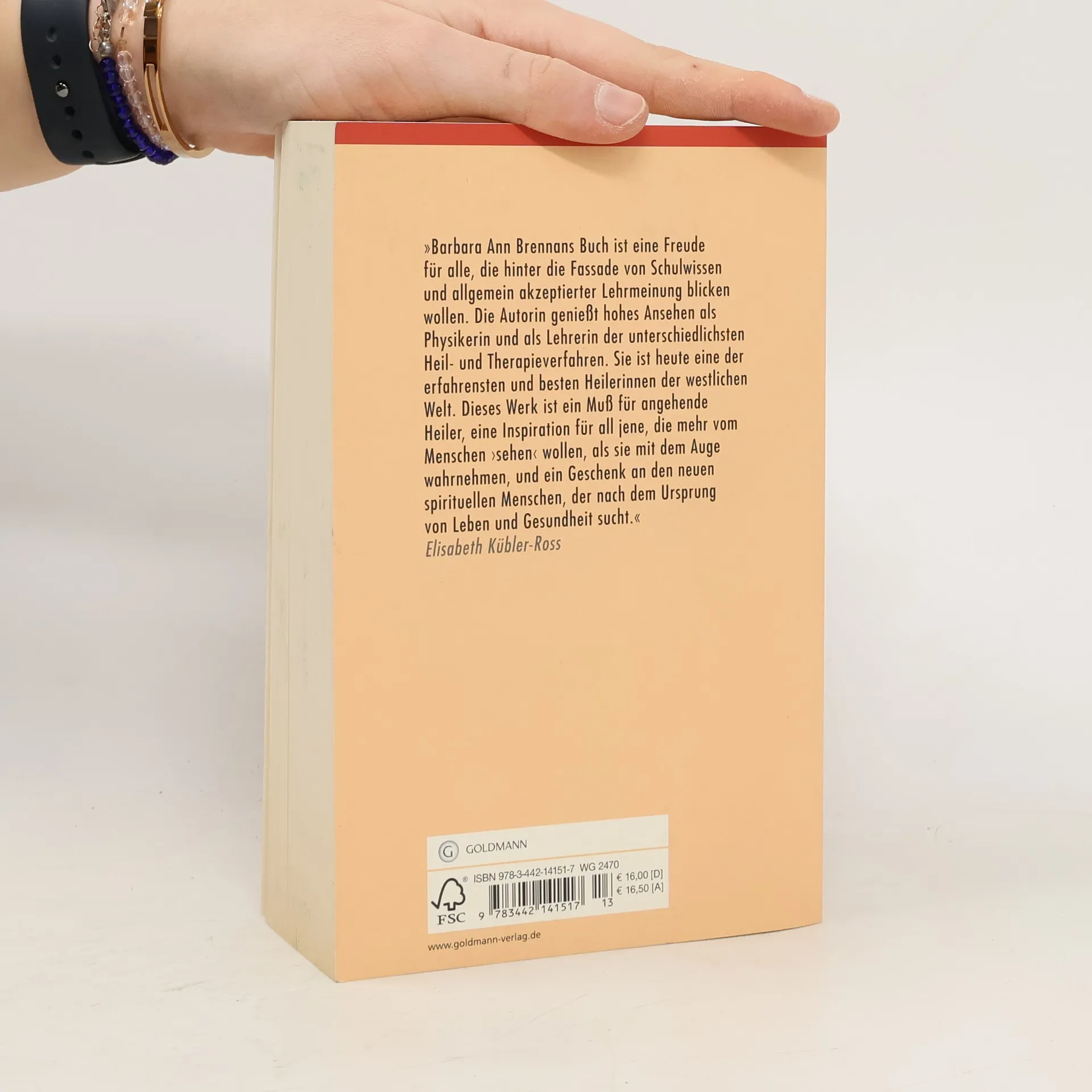 Heilung mit körpereigenen Energiefeldern setzt die Entwicklung von Wahrnehmungsfähigkeiten voraus. Barbara Ann Brennan zeigt, wie man das Energiefeld beobachten kann und integriert verschiedene ganzheitliche Heilmethoden in ihre Arbeit. Das Buch ist die Quintessenz ans der Fülle langjähriger Erfahrungen einer großen Heilerin. Ausstattung: zahlreiche Abbildungen