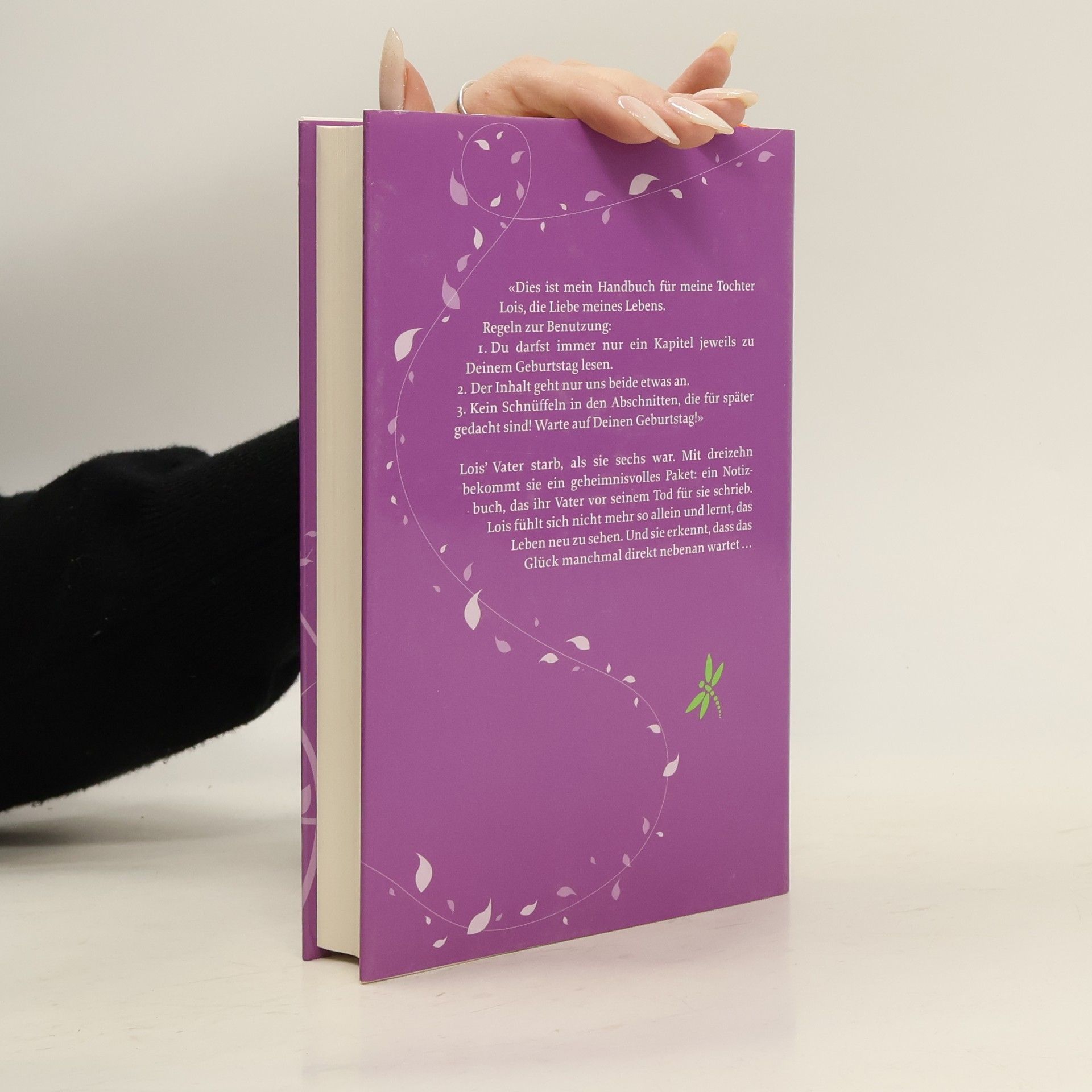 «Dies ist mein Handbuch für meine Tochter Lois, die Liebe meines Lebens. Regeln zur Benutzung: 1. Du darfst immer nur ein Kapitel jeweils zu deinem Geburtstag lesen. 2. Der Inhalt geht nur uns beide etwas an. 3. Kein Schnüffeln in den Abschnitten, die für später gedacht sind! Warte auf deinen Geburtstag!“ Lois' Vater starb, als sie sechs war. Mit dreizehn bekommt sie ein geheimnisvolles Paket: ein Notizbuch, das ihr Vater vor seinem Tod für sie schrieb. Lois fühlt sich nicht mehr so allein und lernt, das Leben neu zu sehen. Und sie erkennt, dass das Glück manchmal direkt nebenan wartet ...