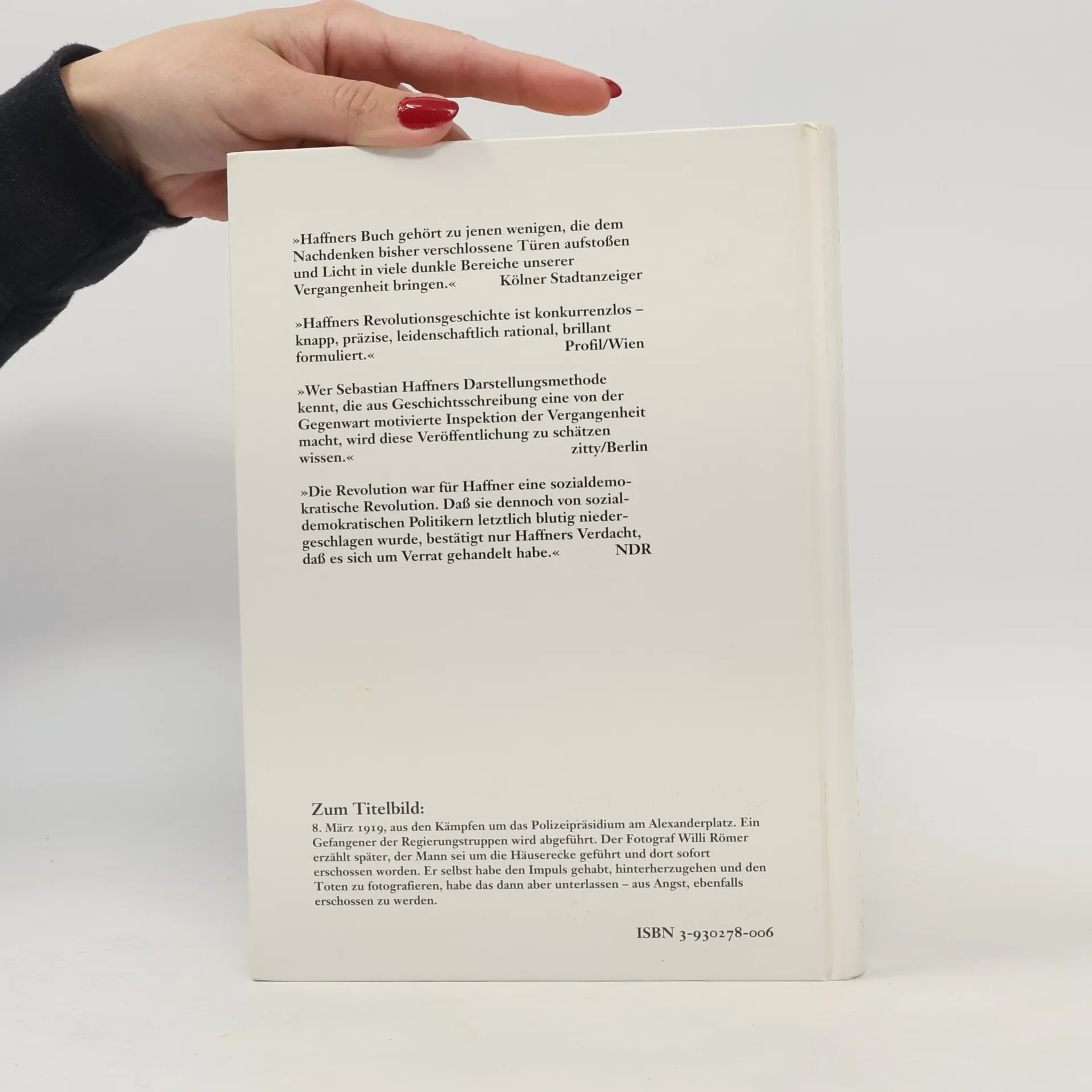 Über kaum einen historischen Vorgang neuerer Zeit herrscht so viel Unklarheit und Dissenz wie über die deutsche Revolution von 1918/19. Hat die sozialdemokratische Führung, die am 9. November 1918 die Regierung übernahm, die Revolution gemacht oder niedergeschlagen? Hat sie Deutschland vor dem Bolschewismus gerettet oder der Reaktion zum Sieg verholfen? Ist sie ein Ruhmesblatt oder ein Schandfleck der deutschen Geschichte? Sebastian Haffner rekonstruiert hier die Ereignisse und räumt mit alten Legenden auf: mit der Leugnung des Faktums, dass überhaupt eine Revolution stattgefunden hat, mit der Behauptung, dass die Revolution eine bolschewistische gewesen sei, und schließlich mit der berühmten, bis in unsere Tage überlieferten Dolchstoßlegende.