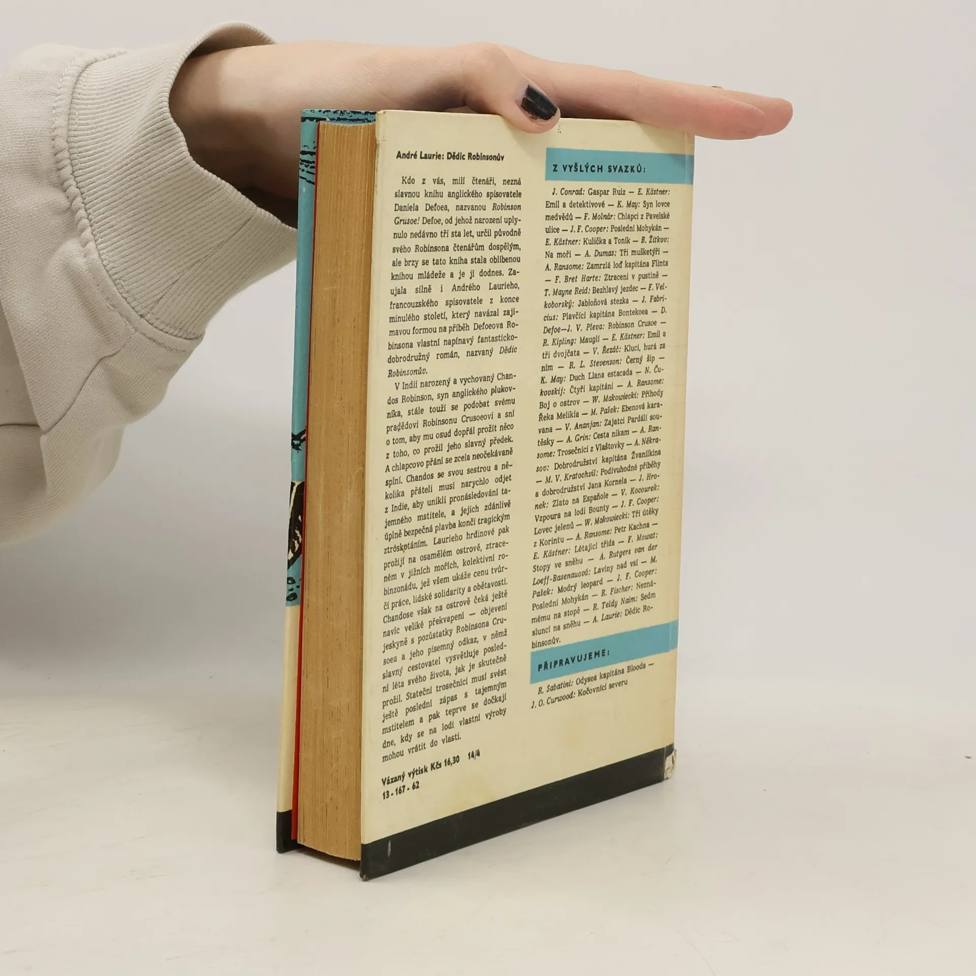 Román, ve kterém autor líčí osudy skupiny přátel, mezi nimiž je i Robinsonův pravnuk, kteří při plavbě ztroskotají a prožijí na osamělém ostrově novou robinzonádu. Identifikační číslo tohoto vydání knihy je 13-167-62 .