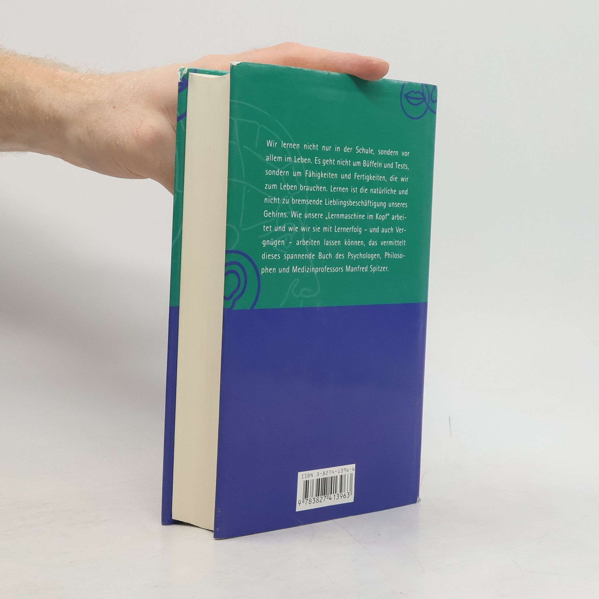 (Autor) Manfred Spitzer (Titel) Lernen (Untertiel) Gehirnforschung und die Schule des Lebens (copy) Wir lernen nicht nur in der Schule, sondern vor allem im Leben. Es geht nicht um Büffeln und Tests, sondern um Fähigkeiten und Fertigkeiten, die wir zum Leben brauchen. Lernen ist die natürliche und nicht zu bremsende Lieblingsbeschäftigung unseres Gehirns. Wie unsere „Lernmaschine im Kopf“ arbeitet und wie wir sie mit Lernerfolg - und auch Vergnügen - arbeiten lassen können, das vermittelt dieses spannende Buch. (Biblio) 2002. 500S., 93 Abb., geb. € 31,- / sFr 50,- ISBN 3-8274-1396-6 (Störer) Bereits über XXX verkaufte Ex.!